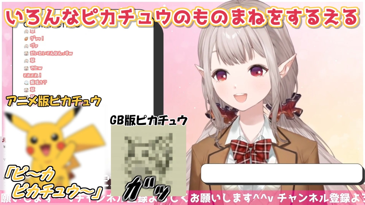 人類でGB版ピカチュウの鳴き声出せる人いるんかな?<br><br>本家参考動画<br>・エルフのえる<br>【雑談】誕生日ミニライブありがとう&雑談配信【にじさんじ/える】<br><a href="https://youtu.be/SWiEMx45M8Q" target="_blank" rel="noopener nofollow">https://youtu.be/SWiEMx45M8Q</a><br><br>参考元チャンネル&Twitter<br>・エルフのえる<br><a href="https://www.youtube.com/@Elu" target="_blank" rel="noopener nofollow">https://www.youtube.com/@Elu</a><br><a href="https://twitter.com/Elu_World" target="_blank" rel="noopener nofollow">https://twitter.com/Elu_World</a><br><br>ニコニコのダイコンマンリスト<br>「バーチャルYouTuberシリーズ」↓<br><a href="https://www.nicovideo.jp/mylist/62551838" target="_blank" rel="noopener">mylist/62551838</a><br>「バーチャルYouTuberシリーズ2」↓<br><a href="https://www.nicovideo.jp/mylist/67858437" target="_blank" rel="noopener">mylist/67858437</a><br>「バーチャルYouTuberシリーズ3」↓<br><a href="https://www.nicovideo.jp/mylist/71340675" target="_blank" rel="noopener">mylist/71340675</a><br>「バーチャルYouTuberシリーズ4」↓<br><a href="https://www.nicovideo.jp/mylist/73995264" target="_blank" rel="noopener">mylist/73995264</a><br><br>ダイコンマンのTwitter<br><a href="https://twitter.com/Daikon_Man_V" target="_blank" rel="noopener nofollow">https://twitter.com/Daikon_Man_V</a>