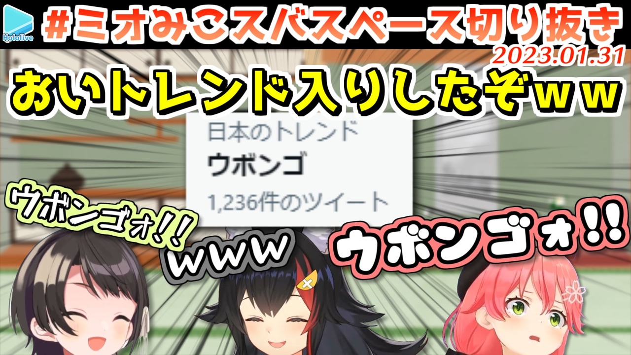 ウボンゴォ!!<br><br>元スペースURLはこちら<br><a href="https://twitter.com/oozorasubaru/status/1620407137800441858" target="_blank" rel="noopener nofollow">https://twitter.com/oozorasubaru/status/1620407137800441858</a><br><br>ポケモンウボンゴ<br><a href="http://www.gp-inc.jp/boardgame_ubongo_pokemon.html" target="_blank" rel="noopener nofollow">http://www.gp-inc.jp/boardgame_ubongo_pokemon.html</a><br><br>Subaru Ch. 大空スバル <a href="https://t.co/1XIcn8rNbM" target="_blank" rel="noopener nofollow">https://t.co/1XIcn8rNbM</a><br>Mio Channel 大神ミオ <a href="https://t.co/srC9Gb4Mxi" target="_blank" rel="noopener nofollow">https://t.co/srC9Gb4Mxi</a><br>Miko Ch. さくらみこ <a href="https://t.co/FM8eBkuiOO" target="_blank" rel="noopener nofollow">https://t.co/FM8eBkuiOO</a><br /><span style="color: #b7b7b7; font-size: 10px;">ホロライブ切り抜き/なめたけ <a href="https://t.co/CBwJLnYR2c" target="_blank" rel="noopener nofollow">https://t.co/CBwJLnYR2c</a></span>
