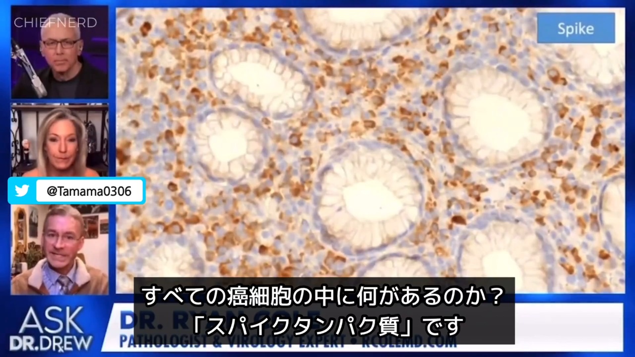ライアン・コール博士<br>「癌細胞の中からスパイクタンパク質が見つかりました、悪性のB細胞には必ずスパイクタンパク質が含まれています」<br><br>眠っていた癌の再発→ステージ4<br>異常な癌、攻撃的な癌<br>異常な年齢層(若者)の癌<br>ターボ癌<br>それを説明できるメカニズムがある<br><br>続きは <a href="https://www.nicovideo.jp/watch/sm41746316" target="_blank" rel="noopener nofollow">https://www.nicovideo.jp/watch/sm41746316</a><br>になります。