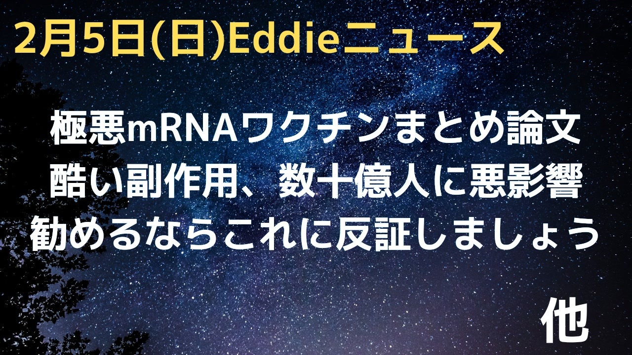 参考URL<br><a href="https://www.ncbi.nlm.nih.gov/pmc/articles/PMC9012513/" target="_blank" rel="noopener nofollow">https://www.ncbi.nlm.nih.gov/pmc/articles/PMC9012513/</a><br />Eddieと申します。<br>少し引棒めいたニュースを集めて喋っています。<br>よろしくお願いします。<br><br>23時過ぎYouTubeライブ配信(マイペース配信中)<br>「Eddieのホンマやと思うニュース3」<br><a href="https://www.youtube.com/channel/UCKaftD6X-qeHC5Vd9CMCedw" target="_blank" rel="noopener nofollow">https://www.youtube.com/channel/UCKaftD6X-qeHC5Vd9CMCedw</a><br><br>ニコ生は毎週土曜21時半〜(もしくは日曜21時半〜)<br><br>twitter<br>@Eddie2travel<br><br>YouTubeライブ配信1000回記念グッズなど販売中<br><a href="https://suzuri.jp/Eddie-Homma3" target="_blank" rel="noopener nofollow">https://suzuri.jp/Eddie-Homma3</a><br><br>