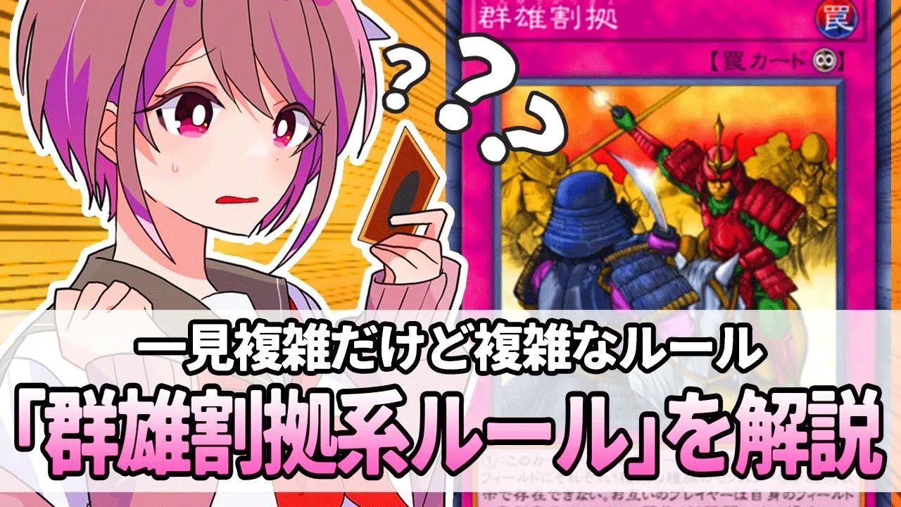 群雄割拠、御前試合、センサー万別などの、モンスターの種族や属性を制限するカードの効果についての解説です。<br>OCGとマスターデュエルで処理が異なるレベルで複雑です(違いにも言及しています)<br /><br>【素材・制作者様】<br><a href="https://kahaduxxxe.booth.pm/" target="_blank" rel="noopener nofollow">https://kahaduxxxe.booth.pm/</a><br><a href="https://twitter.com/akr_1020" target="_blank" rel="noopener nofollow">https://twitter.com/akr_1020</a><br>※許可を得て使用しております。<br><br>【Twitter】<br><a href="https://twitter.com/pi_ni_ki" target="_blank" rel="noopener nofollow">https://twitter.com/pi_ni_ki</a><br><br>【支援絵アルバム】<br><a href="https://note.com/pix989/n/nf5aab604fd77" target="_blank" rel="noopener nofollow">https://note.com/pix989/n/nf5aab604fd77</a>