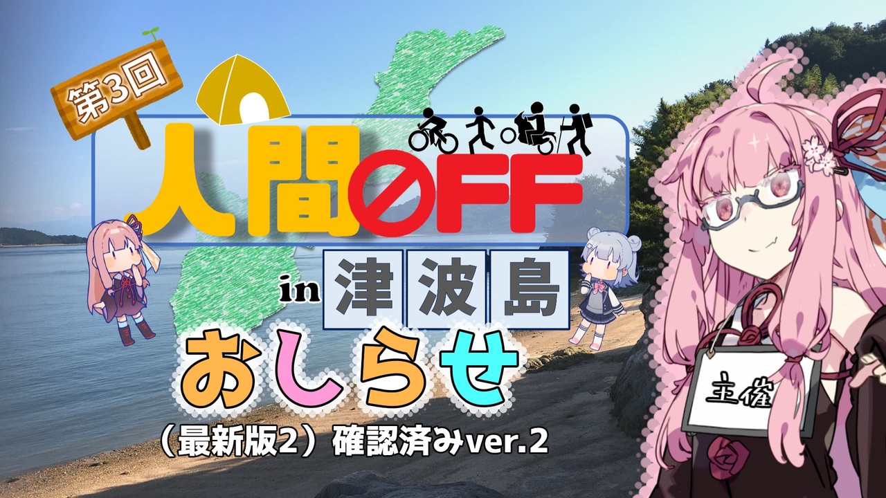 投稿ジャンルを越えて大規模OFF会やりましょう<br>4/8から無人島の津波島を1泊で予約しました<br>車・オートバイ・自転車・野外料理・登山・観光・フィッシングなどアウトドア系の方々<br>集合な!<br>(締切は3/16中まで延期します)<br><br>野外料理班の方々(敬称略)<br>リーダー:ルーフェ(<a href="https://www.nicovideo.jp/watch/sm41609813" class="watch">sm41609813</a>)<br>no=name(<a href="https://www.nicovideo.jp/watch/sm41674695" class="watch">sm41674695</a>)ぼると(<a href="https://www.nicovideo.jp/watch/sm41527971" class="watch">sm41527971</a>)、瓢箪屋(<a href="https://www.nicovideo.jp/watch/sm40638326" class="watch">sm40638326</a>)<br><br>リーダー:るみぃ(<a href="https://www.nicovideo.jp/watch/sm41271124" class="watch">sm41271124</a>)<br>915-F(<a href="https://www.nicovideo.jp/watch/sm40953355" class="watch">sm40953355</a>)スカッシュレモン(<a href="https://www.nicovideo.jp/watch/sm40867975" class="watch">sm40867975</a><br>)雪侍月(<a href="https://www.nicovideo.jp/watch/sm41684685" class="watch">sm41684685</a>)<br><br>リーダー:猫猫砲(<a href="https://www.nicovideo.jp/watch/sm41597431" class="watch">sm41597431</a>)<br>usi(これから投稿)とらいせぷす(<a href="https://www.nicovideo.jp/watch/sm41119853" class="watch">sm41119853</a>)ゴゴカラ(<a href="https://www.nicovideo.jp/watch/sm41193061" class="watch">sm41193061</a>)<br><br>リーダー:岡崎尚子(<a href="https://www.nicovideo.jp/watch/sm41575844" class="watch">sm41575844</a>)<br>nanary(<a href="https://www.nicovideo.jp/watch/sm40877840" class="watch">sm40877840</a>)Oaks(<a href="https://www.nicovideo.jp/watch/sm41553893" class="watch">sm41553893</a>)右左(<a href="https://www.nicovideo.jp/watch/sm41163521" class="watch">sm41163521</a>)<br><br>twitter<br>主催者 FET:@FET_2525(代表作<a href="https://www.nicovideo.jp/watch/sm41716562" class="watch">sm41716562</a>)<br>副主催者そると:@saltin_0017(代表作<a href="https://www.nicovideo.jp/watch/sm41433690" class="watch">sm41433690</a>)<br>車載担当まくら:@macura_Levorge(代表作<a href="https://www.nicovideo.jp/watch/sm39670408" class="watch">sm39670408</a>)<br>野外料理るみぃ:@rMii07(代表作<a href="https://www.nicovideo.jp/watch/sm40732169" class="watch">sm40732169</a>)<br>自転車たたみす:@tatamis_cycle(代表作<a href="https://www.nicovideo.jp/watch/sm40657035" class="watch">sm40657035</a>)<br>ステージりおん:@cvbbpz(代表作<a href="https://www.nicovideo.jp/watch/sm37430320" class="watch">sm37430320</a>)<br>ステージ2:募集中<br>アドバイザー:フミ(代表作<a href="https://www.nicovideo.jp/watch/sm40889543" class="watch">sm40889543</a>)<br><br>参加詳細<br><a href="https://docs.google.com/document/d/1af_DsJ7v-wouXNkQJyrk0tru8k78oV5fWIVYJiw8AwQ" target="_blank" rel="noopener nofollow">https://docs.google.com/document/d/1af_DsJ7v-wouXNkQJyrk0tru8k78oV5fWIVYJiw8AwQ</a><br><br><br>地図<br>©OpenStreetMap contributors / CC BY-SA<br><a href="https://www.openstreetmap.org/copyright" target="_blank" rel="noopener nofollow">https://www.openstreetmap.org/copyright</a><br><br>