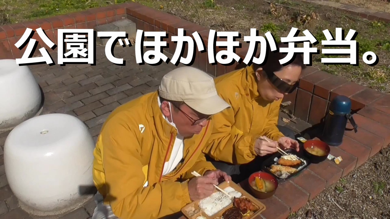 公園でほかほか弁当。