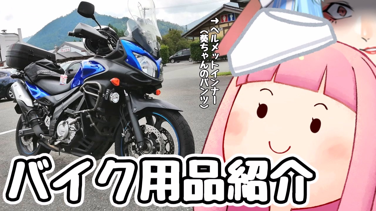 今回はうぷ主の使っているバイク用品を紹介します。<br>ヒマにならないように茶番をふんだんに盛り込みました。<br>では適当にどうぞ。<br><br>バイク用品紹介祭概要↓<br>期間:<br>・2023年1月21日0時~2月20日お昼12時まで<br><br>参加条件:<br>・「バイク用品紹介祭」とタイトルに表記またはタグを付けること<br>・動画内でバイク(自転車)に乗るときに使っている用品を紹介すること<br>(バイク(自転車)用品でなくてもOKです)<br>普段の動画にバイク用品紹介を入れてタグ付けるだけでもOKです。<br><br>注意事項:<br>・酷評だけするような動画でないこと<br><br>質問は動画内にコメントするか私のツイッターに直接聞いてください。<br><br>ざっくりこんな感じです。<br>よろしくお願いします。<br><br>注意事項<br>この動画は「7割が茶番」です。独自設定や、ふざけた表現満載でお送りしますので、<br>合わないと感じたらコメントはせずにブラウザバックをお願いします。<br>この動画は転載禁止です。(Reproducing all or any part of the contents is prohibited.)<br><span style="color: #262626;">一人で大量の簡易コメントを打つのはやめてください。</span><br><br>登場人物紹介<br>浮世絵葵:浮世絵の妖怪。本当の姿は和服美人。無理矢理うぷ主と組まされてご機嫌斜め。<br>うぷ主:最近運動不足で太り気味のインドア系美少女(引きこもりデブニートおじさんともいう)<br><br>クレジット(使用素材一覧)<br>バイク:Vストローム650 ABS(2013年式)<br>合成音声ソフト:VOICEROID2 琴葉 茜・葵<br>立ち絵:blueberry様 竜呑様<br>音声素材:棒読みちゃん <a href="https://www.nicovideo.jp/watch/sm16738081" class="watch">sm16738081</a><br>画像素材:いらすとや様<br><br>以下ニコニ・コモンズ<br>(順不同、自作分含む)<br>編集ソフト:ゆっくりムービーメーカー4 <a href="https://commons.nicovideo.jp/works/nc236011" target="_blank" rel="noopener">nc236011</a><br>BGM:<a href="https://commons.nicovideo.jp/works/nc132272" target="_blank" rel="noopener">nc132272</a> <a href="https://commons.nicovideo.jp/works/nc181295" target="_blank" rel="noopener">nc181295</a><br>効果音:<a href="https://commons.nicovideo.jp/works/nc160503" target="_blank" rel="noopener">nc160503</a> <a href="https://commons.nicovideo.jp/works/nc165372" target="_blank" rel="noopener">nc165372</a> <a href="https://commons.nicovideo.jp/works/nc167181" target="_blank" rel="noopener">nc167181</a> <a href="https://commons.nicovideo.jp/works/nc17969" target="_blank" rel="noopener">nc17969</a> <a href="https://commons.nicovideo.jp/works/nc240340" target="_blank" rel="noopener">nc240340</a> <a href="https://commons.nicovideo.jp/works/nc9963" target="_blank" rel="noopener">nc9963</a><br>画像:<a href="https://commons.nicovideo.jp/works/nc184587" target="_blank" rel="noopener">nc184587</a>