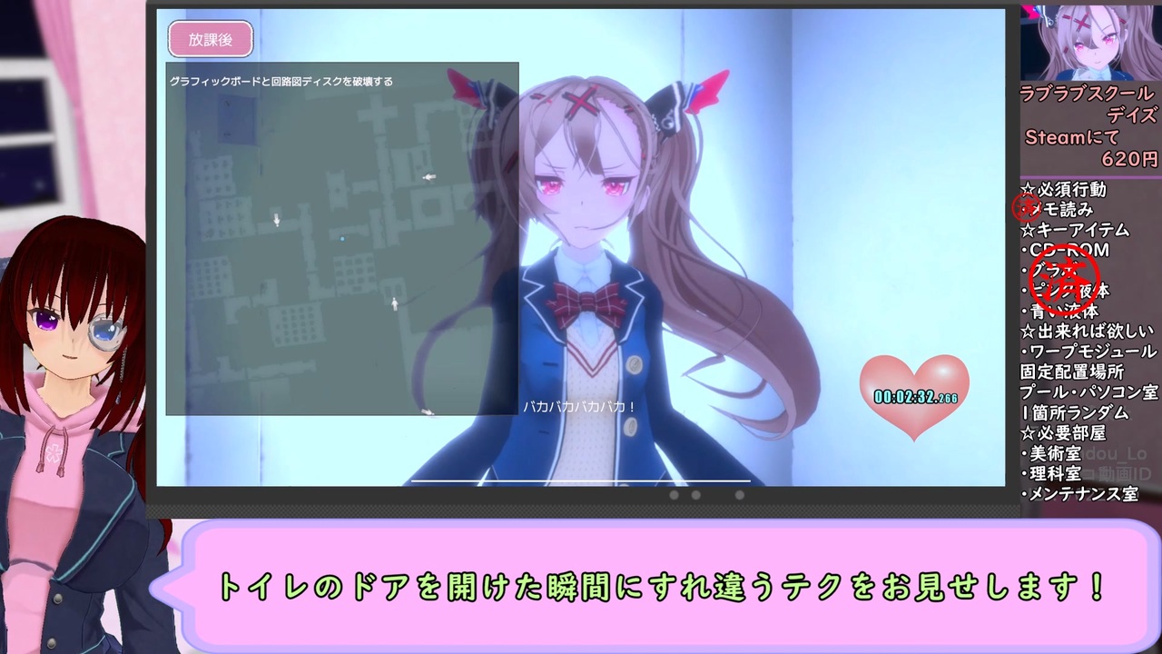 RTA激戦区の予感 <br><br><strong><u>☆RTAレギュレーション☆<br>難易度選択を押した瞬間~ED名が表示された瞬間<br>SpeedRun.comに従い難易度毎に別レギュ扱い</u></strong><br><br>RTAマイリス→<a href="https://www.nicovideo.jp/mylist/69428960" target="_blank" rel="noopener">mylist/69428960</a><br>非RTAマイリス→<a href="https://www.nicovideo.jp/mylist/73122841" target="_blank" rel="noopener">mylist/73122841</a><br>無編集版→<a href="https://youtu.be/bKosSXSAmfo" target="_blank" rel="noopener nofollow">https://youtu.be/bKosSXSAmfo</a><br><br><br>投稿後追記:動画最後でスピードランに記載がないEDがあると発言してますがそれらはサブカテゴリの中に表記がありました。申し訳ありません。<br><br><br>このゲームのSteamのURL<br><a href="https://store.steampowered.com/app/1305300/" target="_blank" rel="noopener nofollow">https://store.steampowered.com/app/1305300/</a><br><br>頂いたファンアートURL(ツイッター)<br><a href="https://twitter.com/act_partner/status/1622975647441379328" target="_blank" rel="noopener nofollow">https://twitter.com/act_partner/status/1622975647441379328</a><br><br>カスタムオーダーメイド3D2(COM3D2)及び<br>バーチャルアバタースタジオを使用しています。