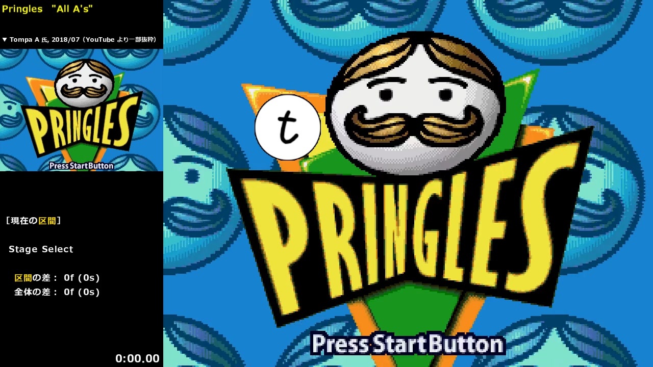 東方Project 関連の RTA を見ていたら作ることになりました。<br>現行TAS より 4秒以上縮んだみたいです。(嬉しい)<br><br><br>メガドライブ プリングルズ (プリングルス, Pringles) の TAS の試走です。<br>下記の現行TAS によると、2:39 とのことで、<br>4.29秒 (258F) ほど短縮できたようです。(嬉しい)<br><br> フレーム数 : 9295F 追記数: 12253<br><br><span style="color: #262626;">(</span><span style="color: #ff0000;"><strong>※</strong></span> ここでは RTA と同様の区間で計測しています。)<br><br><br> [現行TAS]<strong>Tompa A </strong>氏, 2018/07,<br> <a href="https://www.youtube.com/watch?v=6Pha5Rb_Wpo" target="_blank" rel="noopener nofollow">https://www.youtube.com/watch?v=6Pha5Rb_Wpo</a><br><br><br>[関連サイト]<br><a href="http://68000.web.fc2.com/pringles.html" target="_blank" rel="noopener nofollow">http://68000.web.fc2.com/pringles.html</a><br><a href="https://www.speedrun.com/pringles?h=Lays_Stax-All_As&x=zd37wjv2" target="_blank" rel="noopener nofollow">https://www.speedrun.com/pringles?h=Lays_Stax-All_As&x=zd37wjv2</a><br><br /><br>------------- 以下 共通説明文 -------------<br><br><strong>PIXIV FANBOX や Amazon にて支援を募っています。よかったらぜひ。<br>FANBOX : <a href="https://www.fanbox.cc/@tas-suki" target="_blank" rel="noopener nofollow">https://www.fanbox.cc/@tas-suki</a><br>Wish List : <a href="https://www.amazon.co.jp/hz/wishlist/ls/3M57V3BKOO1N9" target="_blank" rel="noopener nofollow">https://www.amazon.co.jp/hz/wishlist/ls/3M57V3BKOO1N9</a></strong><br><br><strong>twitter : <a href="https://twitter.com/tas_suki" target="_blank" rel="noopener nofollow">https://twitter.com/tas_suki</a><br>RTA : <a href="https://www.speedrun.com/user/tas_suki" target="_blank" rel="noopener nofollow">https://www.speedrun.com/user/tas_suki</a></strong><br><br><span style="color: #20124d;"><strong>※ 2021/10 以降は、不定期に動画を投稿しています。</strong></span><br><br> ・Posted TASes (recently)<br>05/31 <a href="https://www.nicovideo.jp/watch/sm42293404" class="watch">sm42293404</a> (PC)<br>04/30 <a href="https://www.nicovideo.jp/watch/sm42136556" class="watch">sm42136556</a> (PC)<br>02/28 <a href="https://www.nicovideo.jp/watch/sm41812217" class="watch">sm41812217</a> (MD)<br>12/25 <a href="https://www.nicovideo.jp/watch/sm41553821" class="watch">sm41553821</a> (PC)<br>11/08 <a href="https://www.youtube.com/watch?v=Lj6N0bm3lyo" target="_blank" rel="noopener nofollow">https://www.youtube.com/watch?v=Lj6N0bm3lyo</a> (PC)<br>09/29 <a href="https://www.youtube.com/watch?v=gRelRaVcyQg" target="_blank" rel="noopener nofollow">https://www.youtube.com/watch?v=gRelRaVcyQg</a> (PC)<br>07/01 <a href="https://www.youtube.com/watch?v=28G366IdmPE" target="_blank" rel="noopener nofollow">https://www.youtube.com/watch?v=28G366IdmPE</a> (PC)<br>05/31 <a href="https://www.nicovideo.jp/watch/sm40538452" class="watch">sm40538452</a> (PC)<br><br> ・Posted TASes (2016/04 ~ )<br><a href="http://www.nicovideo.jp/user/56935712/video" target="_blank" rel="noopener nofollow">http://www.nicovideo.jp/user/56935712/video</a><br><br> ・Posted TASes that are the current fastest records<br><a href="https://www.nicovideo.jp/series/74250" target="_blank" rel="noopener nofollow">https://www.nicovideo.jp/series/74250</a>