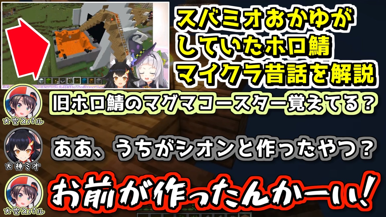 話に上がってたシーンのアーカイブはほぼ残ってませんでしたがほぼ切り抜いてたので興味のある方は下の再生リストからどうぞ<br><br>元動画様はこちら<br>【#1ブロSMOK】1ブロックからはじまる、SMOK生活#02【マインクラフト】<br><a href="https://youtu.be/uSJMkBDk9Hg" target="_blank" rel="noopener nofollow">https://youtu.be/uSJMkBDk9Hg</a><br><br>【2期生コラボ】ホロライブクラフト紫咲シオン視点 2018/12/22<br><a href="https://youtu.be/HS-6swzaSJI" target="_blank" rel="noopener nofollow">https://youtu.be/HS-6swzaSJI</a><br><br>【生放送】鬼&マネージャーのマイクラ生活 2018/12/09<br><a href="https://youtu.be/a4KYPYOcN74" target="_blank" rel="noopener nofollow">https://youtu.be/a4KYPYOcN74</a><br><br>【マイクラ】ホロサバにいたずらする…!? 2018/12/17<br><a href="https://youtu.be/4adUk5vt1L8" target="_blank" rel="noopener nofollow">https://youtu.be/4adUk5vt1L8</a><br><br>Subaru Ch. 大空スバル <a href="https://t.co/1XIcn8rNbM" target="_blank" rel="noopener nofollow">https://t.co/1XIcn8rNbM</a><br>Mio Channel 大神ミオ <a href="https://t.co/srC9Gb4Mxi" target="_blank" rel="noopener nofollow">https://t.co/srC9Gb4Mxi</a><br>Okayu Ch. 猫又おかゆ <a href="https://t.co/JoeI3u9YjS" target="_blank" rel="noopener nofollow">https://t.co/JoeI3u9YjS</a><br><br>ホロ鯖マイクラ切り抜き再生リスト<br><a href="https://www.youtube.com/playlist?list=PLgQncQyv0LeSRzaKDnzkJAtO-EzJo5j5D" target="_blank" rel="noopener nofollow">https://www.youtube.com/playlist?list=PLgQncQyv0LeSRzaKDnzkJAtO-EzJo5j5D</a><br><br>旧ホロ鯖マイクラ切り抜き再生リスト<br><a href="https://www.youtube.com/playlist?list=PLgQncQyv0LeRSEFiDHQMZDuDUBmRMErek" target="_blank" rel="noopener nofollow">https://www.youtube.com/playlist?list=PLgQncQyv0LeRSEFiDHQMZDuDUBmRMErek</a><br /><span style="color: #b7b7b7; font-size: 10px;">ホロライブ切り抜き/なめたけ <a href="https://t.co/CBwJLnYR2c" target="_blank" rel="noopener nofollow">https://t.co/CBwJLnYR2c</a></span>