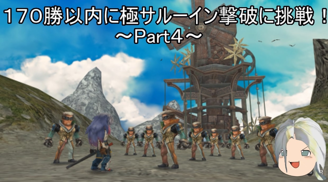 再放送<br><br>~縛り内容~<br>1.170勝以内に極サルーイン撃破する。<br>2.退却や全滅は勝利に含めない。<br>3.固定敵のみ勝利。(逃げられない敵)<br>4.バグ技は禁止。(ワープバグ、同時押しバグなど)<br>5.財宝発掘禁止。<br>6.殿下は頑張らない。<br><br>金曜公開YouTube→<a href="https://youtu.be/SQ5cjYBOf2E" target="_blank" rel="noopener nofollow">https://youtu.be/SQ5cjYBOf2E</a><br>Part1→<a href="https://www.nicovideo.jp/watch/sm41735725" class="watch">sm41735725</a> 前→<a href="https://www.nicovideo.jp/watch/sm41803198" class="watch">sm41803198</a> 次→<a href="https://www.nicovideo.jp/watch/sm41869948" class="watch">sm41869948</a><br>マイリスト→<a href="https://www.nicovideo.jp/mylist/45605659" target="_blank" rel="noopener">mylist/45605659</a><br>生存報告&質疑応答用twitter → <a href="https://twitter.com/conpuman" target="_blank" rel="noopener nofollow">https://twitter.com/conpuman</a><br>ちょい研究所→<a href="http://tyoikenkyu.web.fc2.com/rsaga_m/top.html" target="_blank" rel="noopener nofollow">http://tyoikenkyu.web.fc2.com/rsaga_m/top.html</a>