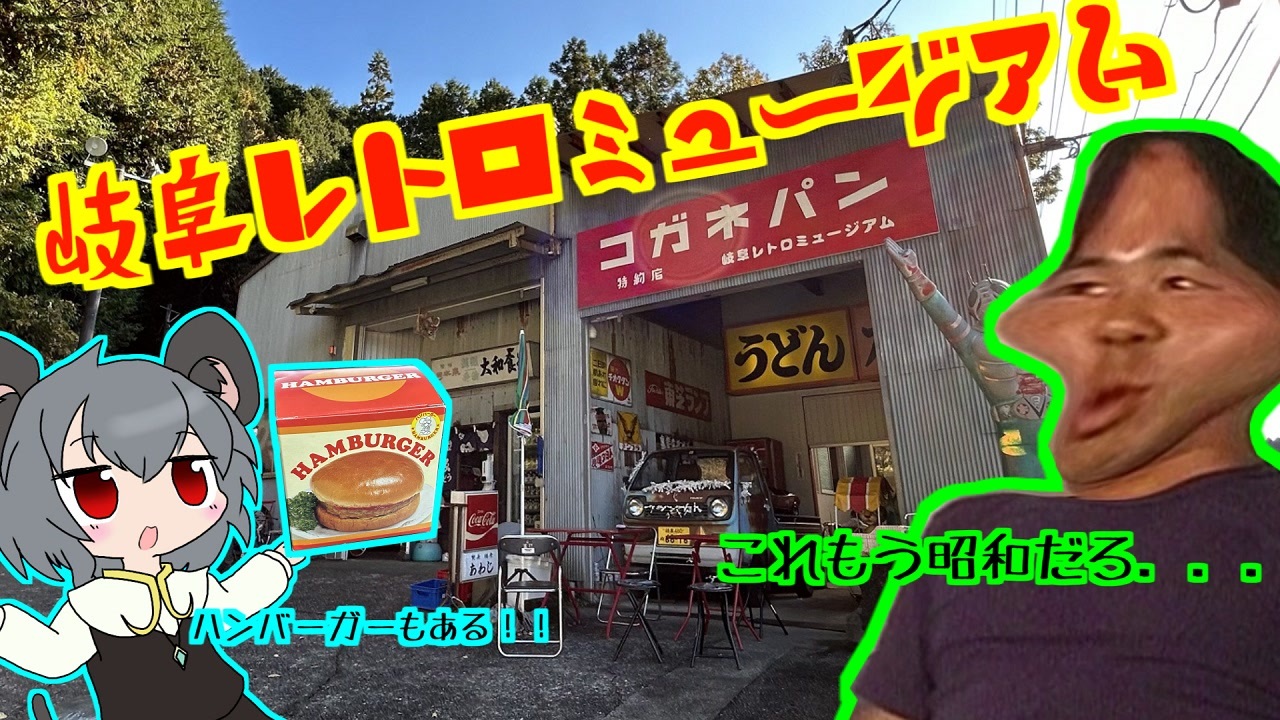 冒頭の岡山はあまり関係ありません。<br><br>という事で最終回です。ここまでのご視聴ありがとうございました。<br>いったんここで区切らせてもらいます。<br>岐阜レトロミュージアムはどこを見渡しても昭和レトロな<br>物が目に入る素敵なミュージアムでした。<br>東海道周辺はレトロ自販機が少ないのでお近くにお住まいの兄貴姉貴達はぜひとも<br>立ち寄ってみてはいかがでしょうか?<br><br>全国のレトロ自販機のオーナーの方々、<br>こんな汚い動画でお店を紹介してしまい申し訳ございませんでした。<br><br>今回行ったお店<br>岐阜県:岐阜レトロミュージアム<br><br>パラオナボーイ音頭/東北きりたん(<a href="https://www.nicovideo.jp/watch/sm40684180" class="watch">sm40684180</a>)<br><br>お借りした立ち絵<br>夏色花梨:沿線電話機 外箱様(<a href="https://seiga.nicovideo.jp/seiga/im10924527" target="_blank" rel="noopener">im10924527</a>)<br>さとうささら:三十様(<a href="https://seiga.nicovideo.jp/seiga/im10776445" target="_blank" rel="noopener">im10776445</a>)<br><br>旅の参考<br>懐かし自販機~味わいの昭和レトロ自販機コーナー<br><a href="https://jihanki.michikusa.jp/" target="_blank" rel="noopener nofollow">https://jihanki.michikusa.jp/</a><br><br>前:<a href="https://www.nicovideo.jp/watch/sm41753081" class="watch">sm41753081</a><br>次:ここで最後だよ<br>マイリス:<a href="https://www.nicovideo.jp/mylist/69245734" target="_blank" rel="noopener">mylist/69245734</a>