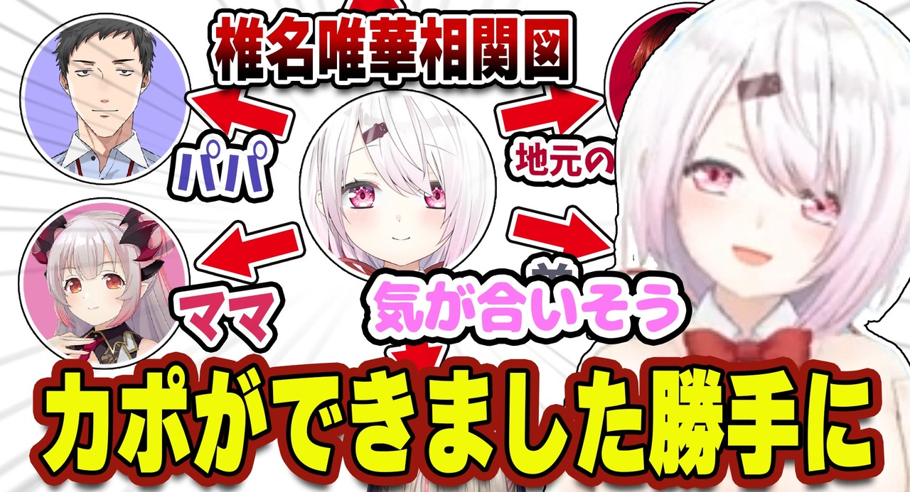 カプ厨椎名さんの新カポ考察<br><br><a href="#" class="seekTime" data-seekTime="1:54" onclick="seekNicoPlayer('#1:54'); return false;">#1:54</a> おまけ<br><br>パトラが社に言及してるシーンないかなと探したら、社サポートセンターについて語ってる<br>配信がパトラとでびるのコラボであったので、おまけとして追加しました<br>その際編集ミスで <a href="#" class="seekTime" data-seekTime="0:48" onclick="seekNicoPlayer('#0:48'); return false;">#0:48</a> で麻雀の部分の切り抜きが消えたせいで20秒くらいコメントがずれてます(時間オーバーにより再編集不可)<br><br>↓Youtubeの方には残ってます<br><a href="https://youtu.be/apOBoGyXUvA" target="_blank" rel="noopener nofollow">https://youtu.be/apOBoGyXUvA</a><br><br><br>▼元動画はこちら↓<br>【雑談】しいなさんの相関図作り!【椎名唯華/にじさんじ】<br><a href="https://www.youtube.com/watch?v=2HtNzEXowVo" target="_blank" rel="noopener nofollow">https://www.youtube.com/watch?v=2HtNzEXowVo</a><br>【雀魂 にじさんじ花鳥風月戦】歪んだ家族チームと卓を囲みます【にじさんじ/社築】<br><a href="https://www.youtube.com/watch?v=WcANAOG76lE" target="_blank" rel="noopener nofollow">https://www.youtube.com/watch?v=WcANAOG76lE</a><br>【#でびパト】でびちゃんに強引に迫って質問攻めにしちゃう❤【周防パトラ / でびでび・でびる】<br><a href="https://www.youtube.com/watch?v=QgOJNQaf0f0" target="_blank" rel="noopener nofollow">https://www.youtube.com/watch?v=QgOJNQaf0f0</a><br><br>▼登場ライバー達<br>〇椎名唯華 / Shiina Yuika<br><a href="https://www.youtube.com/channel/UC_4tXjqecqox5Uc05ncxpxg" target="_blank" rel="noopener nofollow">https://www.youtube.com/channel/UC_4tXjqecqox5Uc05ncxpxg</a><br>〇周防パトラ<br><a href="https://www.youtube.com/@Patra_Suou" target="_blank" rel="noopener nofollow">https://www.youtube.com/@Patra_Suou</a><br>〇社築<br><a href="https://www.youtube.com/@YashiroKizuku" target="_blank" rel="noopener nofollow">https://www.youtube.com/@YashiroKizuku</a><br><br><br><br><a target="_blank" href="https://qa.nicovideo.jp/faq/show/19424?site_domain=default" style="font-size: 13px;color: #657586; text-decoration: underline; line-height: 1.4">この動画は投稿者によって修正されました</a>
