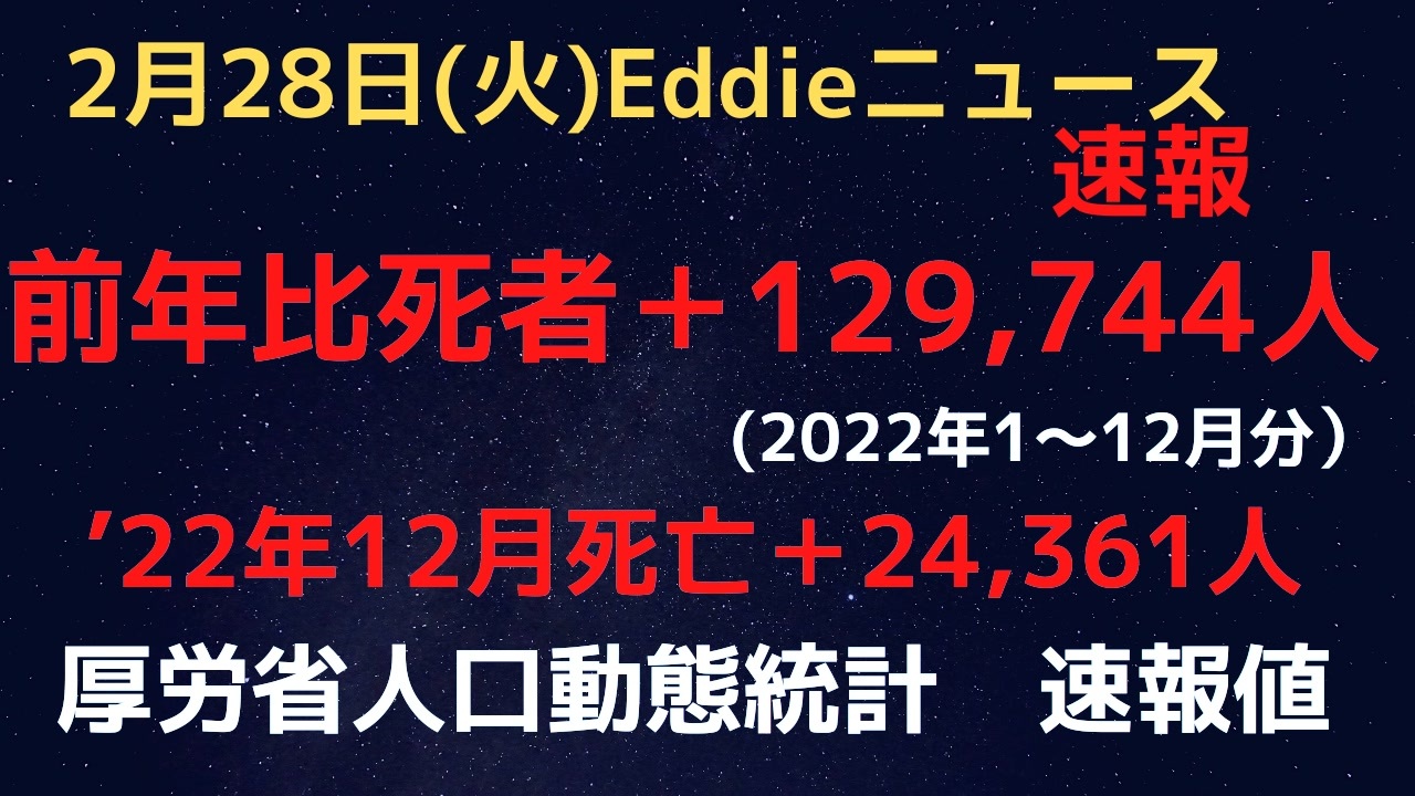 参考URL<br><a href="https://www.mhlw.go.jp/toukei/saikin/hw/jinkou/geppo/s2022/dl/202212.pdf" target="_blank" rel="noopener nofollow">https://www.mhlw.go.jp/toukei/saikin/hw/jinkou/geppo/s2022/dl/202212.pdf</a><br />Eddieと申します。<br>少し引棒めいたニュースを集めて喋っています。<br>よろしくお願いします。<br><br>23時過ぎYouTubeライブ配信(マイペース配信中)<br>「Eddieのホンマやと思うニュース3」<br><a href="https://www.youtube.com/channel/UCKaftD6X-qeHC5Vd9CMCedw" target="_blank" rel="noopener nofollow">https://www.youtube.com/channel/UCKaftD6X-qeHC5Vd9CMCedw</a><br><br>ニコ生は毎週土曜21時半〜(もしくは日曜21時半〜)<br><br>twitter<br>@Eddie2travel<br><br>YouTubeライブ配信1000回記念グッズなど販売中<br><a href="https://suzuri.jp/Eddie-Homma3" target="_blank" rel="noopener nofollow">https://suzuri.jp/Eddie-Homma3</a><br><br>