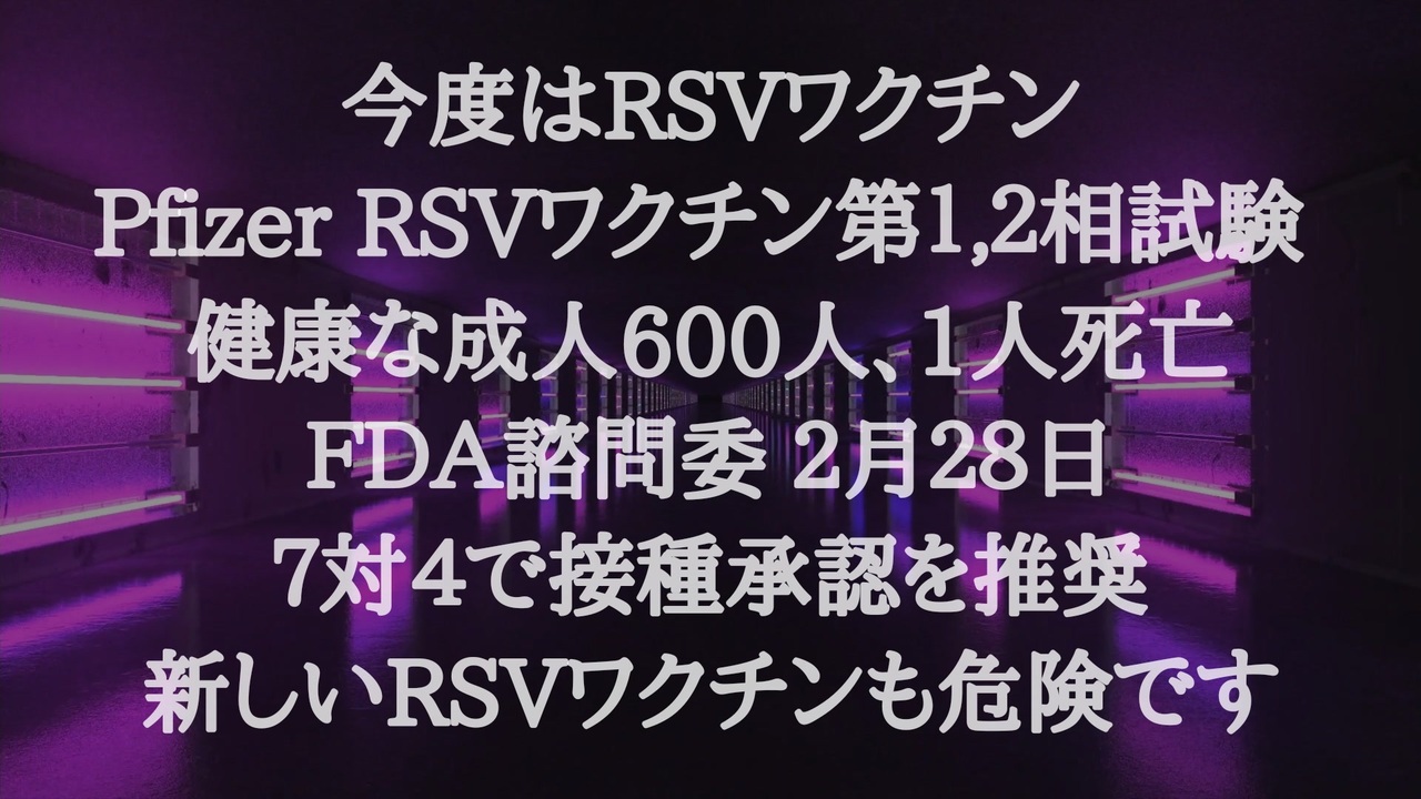 新しいRSVワクチンも危険です<br>- グラクソ・スミスクライン社が開発中の新しいRSVワクチンは安全性の問題により、すべての臨床試験を突然中止せざるを得なくなった。<br>- ファイザーのRSV研究では、600人の健康な若者のうち1人が死亡した。<br><a href="https://t.co/YPTs0JtAoa" target="_blank" rel="noopener nofollow">https://t.co/YPTs0JtAoa</a><br><br><br>「ファイザー社のRSV ワクチン臨床試験で死亡した若い人について。ファイザーはその死を他のことのせいにしようとしています。<br><a href="https://x.gd/Oaw3D" target="_blank" rel="noopener nofollow">https://x.gd/Oaw3D</a><br><br><br>FDA、ファイザー社の高齢者向けRSVワクチンのリスクとしてギラン・バレー症候群の可能性を指摘: <br><a href="https://x.gd/luRTR" target="_blank" rel="noopener nofollow">https://x.gd/luRTR</a><br><br><br>GSKが母体投与RSVワクチンの治験を中止、安全性のシグナル:<br><a href="https://x.gd/G2S9F" target="_blank" rel="noopener nofollow">https://x.gd/G2S9F</a><br><br><br>Pfizer RSVワクチン第1,2相試験 健康な成人600人、1人死亡:<br><a href="https://x.gd/7V5rV" target="_blank" rel="noopener nofollow">https://x.gd/7V5rV</a><br><br><br>米ファイザーのRSウイルスワクチン、FDA諮問委が承認推奨<br><a href="https://x.gd/schOo" target="_blank" rel="noopener nofollow">https://x.gd/schOo</a><br><br><br><br><br />著作権、肖像権に配慮して作成しております。<br><br>◆気になったニュースの台本!?<br>メモ代わりに作った台本をそのままあげてます<br><a href="https://keiichiro8140.hatenablog.com/." target="_blank" rel="noopener nofollow">https://keiichiro8140.hatenablog.com/.</a><br><br><br>ここからはシリーズ紹介<br><br><br>◆ ワクチン解毒・デトックス<br><a href="https://x.gd/fZweg" target="_blank" rel="noopener nofollow">https://x.gd/fZweg</a><br><br>◆ウイリアム・マキス博士のがん治療(イベルメクチン・フェンベンダゾール等)<br><a href="https://x.gd/AtFYS" target="_blank" rel="noopener nofollow">https://x.gd/AtFYS</a><br><br>◆予防接種健康被害救済制度<br><a href="https://x.gd/0xK9x" target="_blank" rel="noopener nofollow">https://x.gd/0xK9x</a><br><br>◆気になったニュース #1501~<br><br>◆ 【ショートver】気になったニュース<br><a href="https://x.gd/7MxXC" target="_blank" rel="noopener nofollow">https://x.gd/7MxXC</a><br><br>◆ 気になったニュース #1001~<br><a href="https://x.gd/Lp8gv" target="_blank" rel="noopener nofollow">https://x.gd/Lp8gv</a><br><br>◆ 気になったニュース #501~<br><a href="https://x.gd/EmbS4" target="_blank" rel="noopener nofollow">https://x.gd/EmbS4</a><br><br>◆ 気になったニュース #1~#500<br><a href="https://x.gd/uPhNb" target="_blank" rel="noopener nofollow">https://x.gd/uPhNb</a><br><br>◆ X(旧Twitter)・テレグラムで気になった情報<br><a href="https://x.gd/YG6FT" target="_blank" rel="noopener nofollow">https://x.gd/YG6FT</a><br><br>◆ 日比谷5万人パレードデ⚪生放送アーカイブ動画<br><a href="https://x.gd/3CHJv" target="_blank" rel="noopener nofollow">https://x.gd/3CHJv</a><br><br>◆日比谷5万人パレード⚪モのマイリスト作ってみました<br><a href="https://nico.ms/mylist/76828848?ref=sp_other" target="_blank" rel="noopener nofollow">https://nico.ms/mylist/76828848?ref=sp_other</a><br><br>◆3.30 令和の百姓⚪⚪<br><a href="https://www.nicovideo.jp/series/511791?ref=garage_share_other" target="_blank" rel="noopener nofollow">https://www.nicovideo.jp/series/511791?ref=garage_share_other</a><br><br>◆ 及川幸久さんの【XNEWS】シリーズ<br><a href="https://x.gd/3k78K" target="_blank" rel="noopener nofollow">https://x.gd/3k78K</a><br><br>◆これまでの動画<a href="https://x.gd/sPXoJ" target="_blank" rel="noopener nofollow">https://x.gd/sPXoJ</a><br><br>◆もしも(BAN)の時のためのマイリンク集<a href="https://lit.link/K-16_News44" target="_blank" rel="noopener nofollow">https://lit.link/K-16_News44</a><br><br>