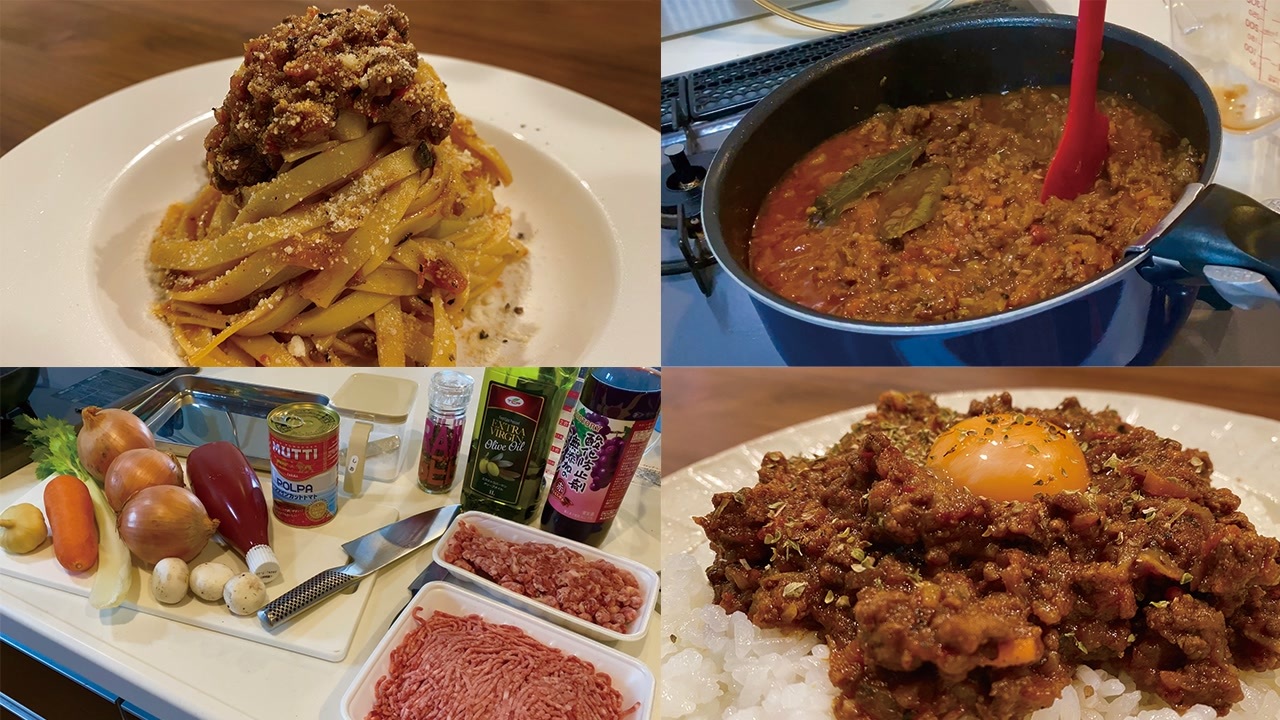 【材料】<br>トマトソース<br>・セロリ 1本<br>・ニンジン 1/2本<br>・マッシュルーム 3つ<br>・ニンニク 1片<br>・タマネギ 3玉<br>・オリーブオイル 大さじ2<br>・塩 1つまみ<br>・水 適宜<br>・牛豚合挽肉 500g<br>・塩 小さじ1<br>・ブラックペッパー 適量<br>・赤ワイン 300ml<br>・ケチャップ 大さじ3<br>・トマト缶 1つ<br>・ローリエ 2枚<br><br>ラグーパスタ<br>・トマトソース お玉3杯分<br>・フィットチーネ 200g<br>・熱湯 400ml<br>・塩 小さじ1<br>・砂糖 小さじ<br>・コンソメ顆粒 少々<br>・粉チーズ 適量<br>・ブラックペッパー 適量<br>・オリーブオイル 小さじ1<br><br>キーマカレー<br>・白米 250g<br>・トマトソース お玉2杯分<br>・クミンパウダー 小さじ1<br>・コリアンダーパウダー 小さじ1<br>・カルダモンパウダー 小さじ1<br>・ガラムマサラ 小さじ1<br>・水 適宜<br>・卵黄 1つ<br>・オレガノ 盛り付け用<br><br>■料理以外のサブチャンネルあります<br>・とっくんのサブチャンネル<br><a href="https://youtube.com/channel/UCsU6Xe6NyrTwid56M9nC9ww" target="_blank" rel="noopener nofollow">https://youtube.com/channel/UCsU6Xe6NyrTwid56M9nC9ww</a><br><br>■レシピ本出しました<br>・Amazon<br><a href="https://www.amazon.co.jp/dp/4046047437" target="_blank" rel="noopener nofollow">https://www.amazon.co.jp/dp/4046047437</a><br>・KADOKAWA<br><a href="https://www.kadokawa.co.jp/product/32..." target="_blank" rel="noopener nofollow">https://www.kadokawa.co.jp/product/32...</a><br><br>■Twitterアカウントあります<br><a href="https://twitter.com/kuntotu" target="_blank" rel="noopener nofollow">https://twitter.com/kuntotu</a><br><br>■Instagramもあります<br><a href="https://www.instagram.com/kuntotu/" target="_blank" rel="noopener nofollow">https://www.instagram.com/kuntotu/</a><br><br>■ファンレター・プレゼントの宛先はこちら<br>150-0011<br>東京都渋谷区東1-26-20<br>東京建物東渋谷ビル8F<br>「株式会社carry on とっくん」宛<br>※冷蔵・冷凍が必要な、なま物の受付はできません。<br><br>■お仕事のご依頼等<br><a href="https://carry0n.co.jp/contact/corporation/" target="_blank" rel="noopener nofollow">https://carry0n.co.jp/contact/corporation/</a><br><br>■諸注意<br>・スパム等は自動的に弾かれてしまいます。www等の連続した単語等にもご注意ください。<br>・コメント欄に動画と関係の無い方のお名前を出すのはその方のご迷惑となってしまう場合がありますのでお控え下さい。<br>・他の方の動画でこのチャンネルの話題をコメントもお控え下さい。