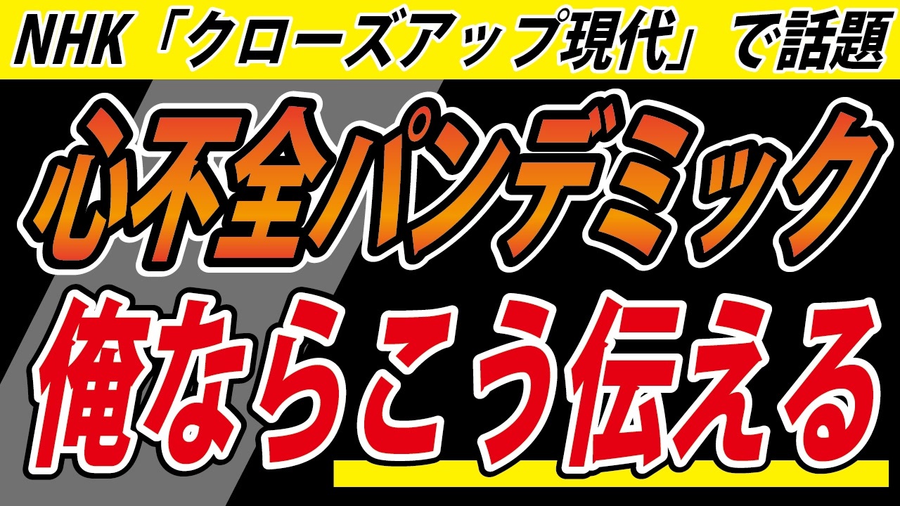 ※この動画は2023年3月2日19:30~行ったYouTubeライブ配信の一部です。<br><br>❑クローズアップ現代<br><a href="https://www.nhk.jp/p/gendai/ts/R7Y6NGLJ6G/blog/bl/pkEldmVQ6R/bp/pdlRBeRvzJ/" target="_blank" rel="noopener nofollow">https://www.nhk.jp/p/gendai/ts/R7Y6NGLJ6G/blog/bl/pkEldmVQ6R/bp/pdlRBeRvzJ/</a><br><br>―――――――――――――――――――――――――――――――<br><br>❑新しい動画サイト「真の日本人増加計画」始めました!<br><a href="https://nicochannel.jp/fujie/" target="_blank" rel="noopener nofollow">https://nicochannel.jp/fujie/</a><br>(ニコニコチャンネル+)<br><br><br>❏藤江の活動を支援していただける方向け<br>【藤江支援口座】のご案内<br>住信SBIネット銀行 ミカン支店(店番号103)<br>口座番号 3107694<br>口座名義 フジエ マサミツ<br><br>――――――――――――――――――――――――――――――<br><br>日本の人口増加を目指す男、藤江です!【メインチャンネル】<br><a href="https://www.youtube.com/c/JINKOUZOUKA/" target="_blank" rel="noopener nofollow">https://www.youtube.com/c/JINKOUZOUKA/</a><br><br>地域と日本の存続のためニ!【藤江2ndチャンネル】<br><a href="https://www.youtube.com/channel/UCfBh4rv5UT7D-qR6KsoZrsA" target="_blank" rel="noopener nofollow">https://www.youtube.com/channel/UCfBh4rv5UT7D-qR6KsoZrsA</a><br><br>今こそ!三千年の底力【藤江3rdチャンネル】<br><a href="https://www.youtube.com/channel/UC5Yrsm8-X8nZj4uKgvE7CBw" target="_blank" rel="noopener nofollow">https://www.youtube.com/channel/UC5Yrsm8-X8nZj4uKgvE7CBw</a><br><br>四海兄弟【藤江4thチャンネル】<br><a href="https://www.youtube.com/channel/UCiyJNO57quj80Ysy7nOABvA" target="_blank" rel="noopener nofollow">https://www.youtube.com/channel/UCiyJNO57quj80Ysy7nOABvA</a><br><br>五穀豊穣【藤江5thチャンネル】<br><a href="https://www.youtube.com/channel/UCptMJCoKYghfew5tDzoEqHQ" target="_blank" rel="noopener nofollow">https://www.youtube.com/channel/UCptMJCoKYghfew5tDzoEqHQ</a><br><br>藤江のTwitter<br><a href="https://twitter.com/JINKOUZOUKA_jp" target="_blank" rel="noopener nofollow">https://twitter.com/JINKOUZOUKA_jp</a><br><br>藤江のニコニコ動画<br><a href="https://www.nicovideo.jp/user/5457748" target="_blank" rel="noopener nofollow">https://www.nicovideo.jp/user/5457748</a>