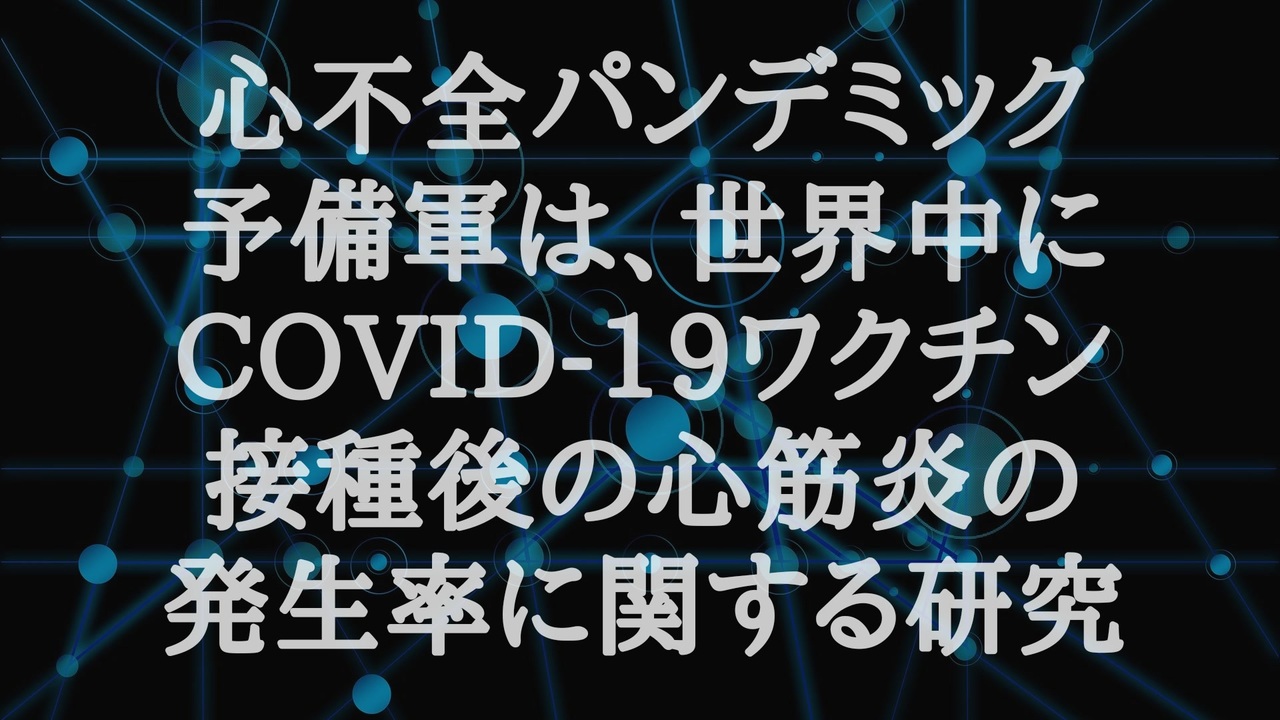 心不全パンデミック<br> 予備軍は、世界中に。<br> <br> ワシントンのワクチン被害者のイベントにて心電図(MCG)のイベントが行われた。驚いたことに30人中16人で心筋炎のマーカーが陽性に。うち二人は現役の米軍パイロットだった(記事は速攻で削除された)ヤバいですね。<br><a href="https://t.co/xJTQvt8EOB" target="_blank" rel="noopener nofollow">https://t.co/xJTQvt8EOB</a> <br> <a href="https://t.co/8jga6uQaiM" target="_blank" rel="noopener nofollow">https://t.co/8jga6uQaiM</a><br><br><br><br>□心不全パンデミック。<br> 心不全は、不治の病。一生投薬。再発・急性増悪で入退院を繰り返す。徐々に命を縮めていく死の宣告。□3億8千万本も打ったのだ、そのツケが一気に来る。<br><a href="https://t.co/DWqOoRhrbQ" target="_blank" rel="noopener nofollow">https://t.co/DWqOoRhrbQ</a><br><br><br><br>若者の間で心不全が増えているの原因はなに?<br> 主要メディアは、コロナワクチンによって心臓病が特に若者の間で著しく増えているのを無視するばかりか、偽情報を広めている<br> #コロナワクチン #心不全 #mRNA技術<br><a href="https://x.gd/1shCJ" target="_blank" rel="noopener nofollow">https://x.gd/1shCJ</a><br><br><br><br />著作権、肖像権に配慮して作成しております。<br><br>◆気になったニュースの台本!?<br>メモ代わりに作った台本をそのままあげてます<br><a href="https://keiichiro8140.hatenablog.com/." target="_blank" rel="noopener nofollow">https://keiichiro8140.hatenablog.com/.</a><br><br><br>ここからはシリーズ紹介<br><br><br>◆ ワクチン解毒・デトックス<br><a href="https://x.gd/fZweg" target="_blank" rel="noopener nofollow">https://x.gd/fZweg</a><br><br>◆ウイリアム・マキス博士のがん治療(イベルメクチン・フェンベンダゾール等)<br><a href="https://x.gd/AtFYS" target="_blank" rel="noopener nofollow">https://x.gd/AtFYS</a><br><br>◆予防接種健康被害救済制度<br><a href="https://x.gd/0xK9x" target="_blank" rel="noopener nofollow">https://x.gd/0xK9x</a><br><br>◆気になったニュース #1501~<br><br>◆ 【ショートver】気になったニュース<br><a href="https://x.gd/7MxXC" target="_blank" rel="noopener nofollow">https://x.gd/7MxXC</a><br><br>◆ 気になったニュース #1001~<br><a href="https://x.gd/Lp8gv" target="_blank" rel="noopener nofollow">https://x.gd/Lp8gv</a><br><br>◆ 気になったニュース #501~<br><a href="https://x.gd/EmbS4" target="_blank" rel="noopener nofollow">https://x.gd/EmbS4</a><br><br>◆ 気になったニュース #1~#500<br><a href="https://x.gd/uPhNb" target="_blank" rel="noopener nofollow">https://x.gd/uPhNb</a><br><br>◆ X(旧Twitter)・テレグラムで気になった情報<br><a href="https://x.gd/YG6FT" target="_blank" rel="noopener nofollow">https://x.gd/YG6FT</a><br><br>◆ 日比谷5万人パレードデ⚪生放送アーカイブ動画<br><a href="https://x.gd/3CHJv" target="_blank" rel="noopener nofollow">https://x.gd/3CHJv</a><br><br>◆日比谷5万人パレード⚪モのマイリスト作ってみました<br><a href="https://nico.ms/mylist/76828848?ref=sp_other" target="_blank" rel="noopener nofollow">https://nico.ms/mylist/76828848?ref=sp_other</a><br><br>◆3.30 令和の百姓⚪⚪<br><a href="https://www.nicovideo.jp/series/511791?ref=garage_share_other" target="_blank" rel="noopener nofollow">https://www.nicovideo.jp/series/511791?ref=garage_share_other</a><br><br>◆ 及川幸久さんの【XNEWS】シリーズ<br><a href="https://x.gd/3k78K" target="_blank" rel="noopener nofollow">https://x.gd/3k78K</a><br><br>◆これまでの動画<a href="https://x.gd/sPXoJ" target="_blank" rel="noopener nofollow">https://x.gd/sPXoJ</a><br><br>◆もしも(BAN)の時のためのマイリンク集<a href="https://lit.link/K-16_News44" target="_blank" rel="noopener nofollow">https://lit.link/K-16_News44</a><br><br>