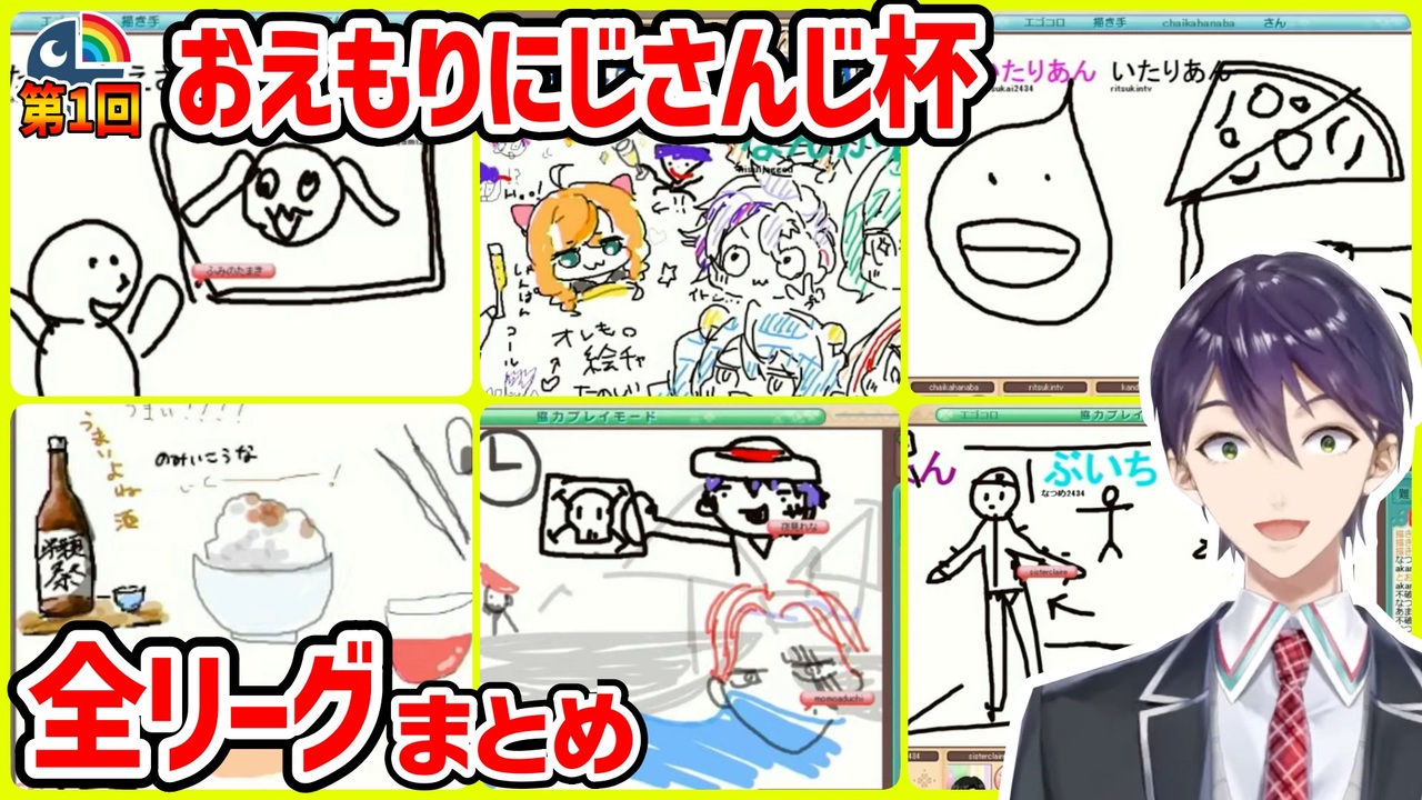 剣持刀也主催の第1回おえもりにじさんじ杯のAリーグから決勝リーグまでの面白シーンまとめです。<br>※剣持のつっこみに着目している関係で、絵を描いているにじライバーさんには偏りがありますのでご了承くださいませ。<br><br>アップロード容量・文字数制限の為高画質版&運営視点以外の元動画はYouTube版にて→<a href="https://youtu.be/QobrBGUopOA" target="_blank" rel="noopener nofollow">https://youtu.be/QobrBGUopOA</a><br><br><a href="#" class="seekTime" data-seekTime="0:00" onclick="seekNicoPlayer('#0:00'); return false;">#0:00</a> Aリーグ<br>(樋口楓、愛園愛美、アルス・アルマル、空星きらめ、天ヶ瀬むゆ、五十嵐梨花)<br><br><a href="#" class="seekTime" data-seekTime="2:50" onclick="seekNicoPlayer('#2:50'); return false;">#2:50</a> Bリーグ<br>(える、文野環、鈴木勝、えま★おうがすと、レイン・パターソン、鏑木ろこ)<br><br><a href="#" class="seekTime" data-seekTime="5:51" onclick="seekNicoPlayer('#5:51'); return false;">#5:51</a> Cリーグ<br>(伏見ガク、雪城眞尋、レヴィ・エリファ、白雪巴、セラフ・ダズルガーデン、石神のぞみ)<br><br><a href="#" class="seekTime" data-seekTime="7:01" onclick="seekNicoPlayer('#7:01'); return false;">#7:01</a> Dリーグ<br>(ドーラ、安土桃、成瀬鳴、夜見れな、壱百満天原サロメ、倉持めると)<br><br><a href="#" class="seekTime" data-seekTime="9:53" onclick="seekNicoPlayer('#9:53'); return false;">#9:53</a> Eリーグ<br>(渋谷ハジメ、花畑チャイカ、神田笑一、桜凛月、小野町春香、魔使マオ)<br><br>#<a href="#" class="seekTime" data-seekTime="13:35" onclick="seekNicoPlayer('#13:35'); return false;">#13:35</a> Fリーグ<br>(シスター・クレア、天宮こころ、不破湊、来栖夏芽、北小路ヒスイ、獅子堂あかり)<br><br><a href="#" class="seekTime" data-seekTime="17:30" onclick="seekNicoPlayer('#17:30'); return false;">#17:30</a> Gリーグ<br>(剣持刀也、轟京子、鷹宮リオン、ベルモンド・バンデラス、エリー・コニファー、レオス・ヴィンセント)<br><br><a href="#" class="seekTime" data-seekTime="19:44" onclick="seekNicoPlayer('#19:44'); return false;">#19:44</a> 準決勝Aリーグ<br>(剣持刀也、ドーラ、シスター・クレア、雪城眞尋、セラフ・ダズルガーデン、五十嵐梨花)<br><br><a href="#" class="seekTime" data-seekTime="23:00" onclick="seekNicoPlayer('#23:00'); return false;">#23:00</a> 準決勝Bリーグ<br>(樋口楓、える、鷹宮リオン、小野町春香、夜見れな、レイン・パターソン)<br><br><a href="#" class="seekTime" data-seekTime="25:50" onclick="seekNicoPlayer('#25:50'); return false;">#25:50</a> 準決勝Cリーグ<br>(渋谷ハジメ、文野環、えま★おうがすと、北小路ヒスイ、鏑木ろこ、石神のぞみ)<br><br><a href="#" class="seekTime" data-seekTime="28:37" onclick="seekNicoPlayer('#28:37'); return false;">#28:37</a> 決勝<br>(樋口楓、渋谷ハジメ、ドーラ、北小路ヒスイ、レイン・パターソン、五十嵐梨花)<br><br><br><br>◆運営視点<br>第1回 おえもりにじさんじ杯【おえかきの森】<br><a href="https://youtu.be/7YQLI_oAwKM" target="_blank" rel="noopener nofollow">https://youtu.be/7YQLI_oAwKM</a><br><br>《主催》<br>剣持刀也:<a href="https://t.co/dNfUPFBBch?amp=1" target="_blank" rel="noopener nofollow">https://t.co/dNfUPFBBch?amp=1</a><br><br><br>#にじさんじ切り抜き