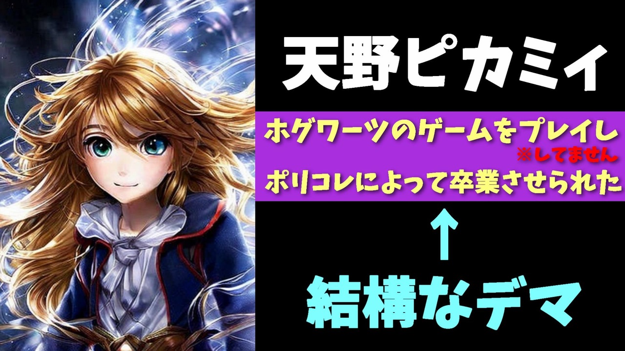 2023年3月1日、個人VTuberグループ「VOMS Project」公式ツイッターより、所属VTuberの天野ピカミィさんの卒業が発表されたのですが、その卒業理由がハリー・ポッターのゲームをしたためにポリコレ棒で叩かれたためであるとする説がまことしやかにささやかれているようです。<br><br>引用<br><a href="https://twitter.com/VOMS_Project/status/1630917621750145029" target="_blank" rel="noopener nofollow">https://twitter.com/VOMS_Project/status/1630917621750145029</a><br><br>Youtube <a href="https://www.youtube.com/@V_Virgin_Mary" target="_blank" rel="noopener nofollow">https://www.youtube.com/@V_Virgin_Mary</a><br>twitter <a href="https://twitter.com/V_Virgin_Mary" target="_blank" rel="noopener nofollow">https://twitter.com/V_Virgin_Mary</a><br><br>使用素材<br>高品質なフリー動画素材 - Pixabay <a href="https://pixabay.com/ja/videos" target="_blank" rel="noopener nofollow">https://pixabay.com/ja/videos</a>