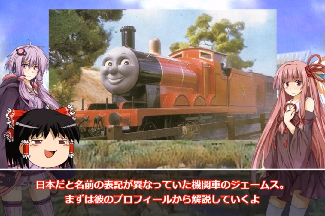 皆様、あけましておめでとうございます!(挨拶が遅い!)<br>やってまいりました<span style="color: #ff0000;"><strong>ゆく</strong></span><span style="color: #8e7cc3;"><strong>ゆか</strong></span>が教える<span style="color: #3c78d8;"><strong>きかんしゃトーマス</strong></span>解説動画も第5回目に突入です!<br>さて、今回は赤いボディが自慢でナルシストなジェームスの紹介となります。<br>本日のゲストもあの子がついに登場!<br><br><span style="color: #ff0000;"><strong>ゆっくりさん</strong></span>と<span style="color: #8e7cc3;"><strong>ゆかりさん</strong></span>が<span style="color: #6d9eeb;"><strong>きかんしゃトーマスとその仲間たち</strong></span>について解説する動画となります。<br>また、当動画は原作汽車のえほんとテレビ版1~7期までのキャラクターや設定を取り上げる方針です。<br>8期以降?一切微塵も取り上げませんのであしからず。<br>内容も誤りや省いているところもございます故、そこはご了承願います。<br>動画の感想はメールで送ってください。<br><span style="color: #0000ff;"><strong><u>sodorp@outlook.jp</u></strong></span><br><br><strong><u><a href="https://www.nicovideo.jp/watch/sm40795410" class="watch">sm40795410</a></u></strong>←#4(<span style="color: #1155cc;">ゴードン</span>編) 後編→<a href="https://www.nicovideo.jp/watch/sm42002194" class="watch">sm42002194</a><br><br>この動画シリーズを作るきっかけとなった動画<br>DuckHead / WDS様制作<br>ゆっくりとディズニーアニメとシリーズ<br><a href="https://www.nicovideo.jp/mylist/60142128" target="_blank" rel="noopener">mylist/60142128</a><br><br>トーマスの歴史についてはこちら<br>きかんしゃトーマスはこうして生まれた<br><a href="https://www.nicovideo.jp/mylist/65815013" target="_blank" rel="noopener">mylist/65815013</a><br><br>投稿動画一覧<br><a href="https://www.nicovideo.jp/mylist/39678977" target="_blank" rel="noopener">mylist/39678977</a><br><br>今作<br><a href="https://www.nicovideo.jp/mylist/70501770" target="_blank" rel="noopener">mylist/70501770</a><br><br>欲しいものリストを公開してます<br>(物資のご支援をよろしくお願いします。)<br><a href="https://x.gd/v2gMF" target="_blank" rel="noopener nofollow">https://x.gd/v2gMF</a><br><br><a target="_blank" href="https://qa.nicovideo.jp/faq/show/19424?site_domain=default" style="font-size: 13px;color: #657586; text-decoration: underline; line-height: 1.4">この動画は投稿者によって修正されました</a>