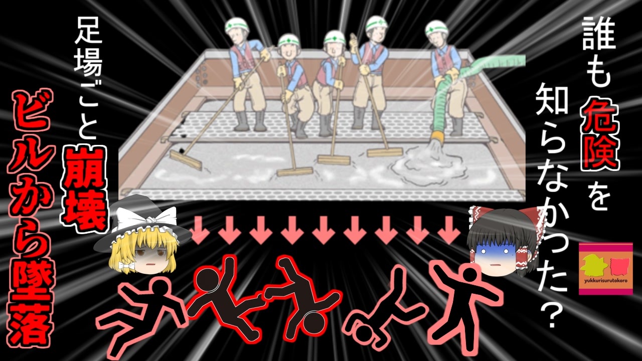 <a href="#" class="seekTime" data-seekTime="00:00" onclick="seekNicoPlayer('#00:00'); return false;">#00:00</a> 冒頭挨拶<br><a href="#" class="seekTime" data-seekTime="00:46" onclick="seekNicoPlayer('#00:46'); return false;">#00:46</a> 視聴上の注意<br><a href="#" class="seekTime" data-seekTime="1:28" onclick="seekNicoPlayer('#1:28'); return false;">#1:28</a> 本編開始<br><a href="#" class="seekTime" data-seekTime="2:13" onclick="seekNicoPlayer('#2:13'); return false;">#2:13</a> 高層ビルの床部分工事<br><a href="#" class="seekTime" data-seekTime="3:39" onclick="seekNicoPlayer('#3:39'); return false;">#3:39</a> コンクリートを均していると…<br><a href="#" class="seekTime" data-seekTime="4:46" onclick="seekNicoPlayer('#4:46'); return false;">#4:46</a> 原因はいくつもあった<br><a href="#" class="seekTime" data-seekTime="5:33" onclick="seekNicoPlayer('#5:33'); return false;">#5:33</a> 本来あるべき支えがなかった<br><a href="#" class="seekTime" data-seekTime="7:09" onclick="seekNicoPlayer('#7:09'); return false;">#7:09</a> 危険性を誰も認識していなかった<br><a href="#" class="seekTime" data-seekTime="7:46" onclick="seekNicoPlayer('#7:46'); return false;">#7:46</a> 必要だった対策<br><br><br><br>今回紹介するのは、以前リクエストがありました「建設業」に関する事例です。<br>岐阜県岐阜市某所ではこの日、高層ビルの新築工事が行われていました。<br>下請け建設業者の作業員男性「Aさん」は、エレベーターピット床のスラブ打設作業を行っていました。<br>他の下請け業者作業員と共に、先に設置されていたフラットデッキの上に立ち、コンクリートを流し込んで、それを均していたところ、突然フラットデッキが崩壊し、作業員5名は約12m落下し、鉄板の上に激突してしまいました。<br><br>実はこのフラットデッキは強度が不足しており、本来ならば中間支保工を設け、強度を補う必要がありましたが、施工直前に計画変更が行われ、この中間支保工がされていない状態になっていました。<br><br>引用・出展・参考文献<br>NIPPON STEEL 日鉄建材㈱ <br><a href="https://ishort.ink/CJ5k" target="_blank" rel="noopener nofollow">https://ishort.ink/CJ5k</a><br>㈱コバヤシ フラットデッキ<br><a href="https://ishort.ink/1QXG" target="_blank" rel="noopener nofollow">https://ishort.ink/1QXG</a><br>フラットデッキ工業会 フラットデッキ型枠工法の設計・施工法<br><a href="https://ishort.ink/JWY5" target="_blank" rel="noopener nofollow">https://ishort.ink/JWY5</a><br>厚生労働省 職場のあんぜんサイト<br><a href="https://ishort.ink/GQnH" target="_blank" rel="noopener nofollow">https://ishort.ink/GQnH</a><br><a href="https://ishort.ink/WFBp" target="_blank" rel="noopener nofollow">https://ishort.ink/WFBp</a><br>その他視聴者提供資料など<br><br><br />※この動画は過去の事件を知り、現在でも同じことが発生する危険性を再認識、関与しないように促すための動画であり、視聴者を扇動、動揺を誘うためのコンテンツではありません。<br><br>ご要望にお応えして、メンバーシップの開設を行いました。<br>下記URLからも登録可能ですので、ご興味がある方は是非ご参加ください。<br><a href="https://www.youtube.com/channel/UCcT5a1J7XJW7CLYI2RKl4pw/join" target="_blank" rel="noopener nofollow">https://www.youtube.com/channel/UCcT5a1J7XJW7CLYI2RKl4pw/join</a><br><br><br>Twitter<br>→<a href="https://twitter.com/yukkurisurutoko" target="_blank" rel="noopener nofollow">https://twitter.com/yukkurisurutoko</a><br><br>取り急ぎ、簡易的にですがマイリストを作りました。<br>【ゆっくり解説】事故・事件関係紹介リスト <br><a href="https://www.nicovideo.jp/mylist/71034319" target="_blank" rel="noopener nofollow">https://www.nicovideo.jp/mylist/71034319</a><br>【ゆっくり解説】放射線系事故<br><a href="https://www.nicovideo.jp/mylist/71034368" target="_blank" rel="noopener nofollow">https://www.nicovideo.jp/mylist/71034368</a><br>【ゆっくり解説】鉄道系事故・事件関連<br><a href="https://www.nicovideo.jp/mylist/71034379" target="_blank" rel="noopener nofollow">https://www.nicovideo.jp/mylist/71034379</a>
