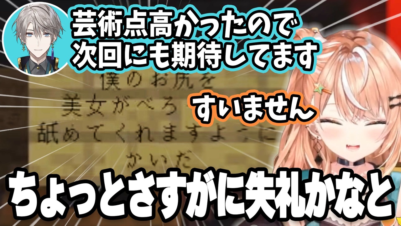 にじ鯖名物の甲斐田なりチャ絵馬にぶっ飛んだ絵馬を奉納したものの、その後に撤去する話の顛末です。<br>ちなみに荒れてるというわけではなかったです<br><br><br><a href="#" class="seekTime" data-seekTime="2:44" onclick="seekNicoPlayer('#2:44'); return false;">#2:44</a> 絵馬を撤去する五十嵐梨花<br><a href="#" class="seekTime" data-seekTime="6:44" onclick="seekNicoPlayer('#6:44'); return false;">#6:44</a> おまけ 過去のライン越え絵馬(若女将)<br><br>〇元動画↓ <br>【雑談】おえもりにじさんじ杯 3位でした!振り返り雑談しながらMinecraft【五十嵐梨花 / にじさんじ】 <a href="https://www.youtube.com/watch?v=PAUZdxoTa3w" target="_blank" rel="noopener nofollow">https://www.youtube.com/watch?v=PAUZdxoTa3w</a> <br>【Minecraft】超深夜マイクラ⛏|チェスト整理とかいろいろ|静かめ雑談【五十嵐梨花 / にじさんじ】<br><a href="https://www.youtube.com/watch?v=CyOVpG17zEc" target="_blank" rel="noopener nofollow">https://www.youtube.com/watch?v=CyOVpG17zEc</a><br>【マイクラ】1からわかる、にじさんじ鯖 ガイド付き観光~□□【本間ひまわり/にじさんじ】 <a href="https://www.youtube.com/watch?v=EX7NaUixUeI&t=6817s" target="_blank" rel="noopener nofollow">https://www.youtube.com/watch?v=EX7NaUixUeI&t=6817s</a> <br><br>---------------------------------------------------------------------------------------------------------------- <br> 登場ライバーch <br>〇五十嵐梨花 / Igarashi Rika <br><a href="https://www.youtube.com/@IgarashiRika" target="_blank" rel="noopener nofollow">https://www.youtube.com/@IgarashiRika</a><br><br>〇甲斐田 晴 / Kaida Haru <br><a href="https://www.youtube.com/channel/UCo2N7C-Z91waaR6lF3LL_jw" target="_blank" rel="noopener nofollow">https://www.youtube.com/channel/UCo2N7C-Z91waaR6lF3LL_jw</a><br><br>〇本間ひまわり/ Himawari Honma <br><a href="https://www.youtube.com/channel/UC0g1AE0DOjBYnLhkgoRWN1w" target="_blank" rel="noopener nofollow">https://www.youtube.com/channel/UC0g1AE0DOjBYnLhkgoRWN1w</a> <br><br>〇童田明治 /Warabeda Meiji <br><a href="https://www.youtube.com/channel/UCveZ9Ic1VtcXbsyaBgxPMvg" target="_blank" rel="noopener nofollow">https://www.youtube.com/channel/UCveZ9Ic1VtcXbsyaBgxPMvg</a> <br><br><br><br><br>