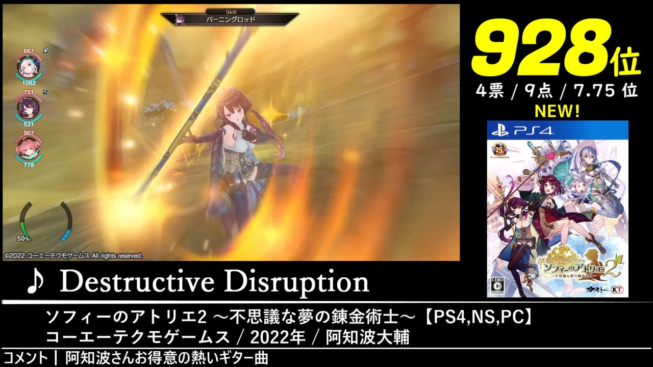 948位~924位の26曲を収録しています。<br>2022年5月1日~8月1日にかけて開催された「第15回みんなで決めるゲーム音楽ベスト100」の結果を動画化したものです。<span style="font-size: 10px;">集計人≠動画制作者</span><br><br>またまた素敵な応援イラストをいただきました!本当にありがとうございます!!!<br><br><br>↓全体の結果はこちら↓<br><a href="https://w.atwiki.jp/gamemusicbest100/pages/9902.html" target="_blank" rel="noopener nofollow">https://w.atwiki.jp/gamemusicbest100/pages/9902.html</a><br><br><br>※収録時間が5分以上の楽曲です。<br><a href="#" class="seekTime" data-seekTime="42:18" onclick="seekNicoPlayer('#42:18'); return false;">#42:18</a>~、<a href="#" class="seekTime" data-seekTime="74:33" onclick="seekNicoPlayer('#74:33'); return false;">#74:33</a>~<br><br><br>Part.2→<a href="https://www.nicovideo.jp/watch/sm41874990" class="watch">sm41874990</a><br>Part.4→<a href="https://www.nicovideo.jp/watch/sm41941177" class="watch">sm41941177</a><br>第15回まとめ→<a href="https://www.nicovideo.jp/mylist/74713060" target="_blank" rel="noopener">mylist/74713060</a><br><br><br>【ショートカット】<br>948位①<a href="#" class="seekTime" data-seekTime="0:40" onclick="seekNicoPlayer('#0:40'); return false;">#0:40</a>/948位②<a href="#" class="seekTime" data-seekTime="3:06" onclick="seekNicoPlayer('#3:06'); return false;">#3:06</a>/944位①<a href="#" class="seekTime" data-seekTime="7:33" onclick="seekNicoPlayer('#7:33'); return false;">#7:33</a>/944位②<a href="#" class="seekTime" data-seekTime="10:45" onclick="seekNicoPlayer('#10:45'); return false;">#10:45</a>/944位③<a href="#" class="seekTime" data-seekTime="12:41" onclick="seekNicoPlayer('#12:41'); return false;">#12:41</a>/944位④<a href="#" class="seekTime" data-seekTime="14:18" onclick="seekNicoPlayer('#14:18'); return false;">#14:18</a>/941位①<a href="#" class="seekTime" data-seekTime="15:46" onclick="seekNicoPlayer('#15:46'); return false;">#15:46</a>/941位②<a href="#" class="seekTime" data-seekTime="20:18" onclick="seekNicoPlayer('#20:18'); return false;">#20:18</a>/941位③<a href="#" class="seekTime" data-seekTime="22:12" onclick="seekNicoPlayer('#22:12'); return false;">#22:12</a>/939位①<a href="#" class="seekTime" data-seekTime="24:22" onclick="seekNicoPlayer('#24:22'); return false;">#24:22</a>/939位②<a href="#" class="seekTime" data-seekTime="29:21" onclick="seekNicoPlayer('#29:21'); return false;">#29:21</a>/937位①<a href="#" class="seekTime" data-seekTime="32:32" onclick="seekNicoPlayer('#32:32'); return false;">#32:32</a>/937位②<a href="#" class="seekTime" data-seekTime="34:17" onclick="seekNicoPlayer('#34:17'); return false;">#34:17</a>/935位①<a href="#" class="seekTime" data-seekTime="36:39" onclick="seekNicoPlayer('#36:39'); return false;">#36:39</a>/935位②<a href="#" class="seekTime" data-seekTime="39:40" onclick="seekNicoPlayer('#39:40'); return false;">#39:40</a>/933位①<a href="#" class="seekTime" data-seekTime="42:18" onclick="seekNicoPlayer('#42:18'); return false;">#42:18</a>/933位②<a href="#" class="seekTime" data-seekTime="48:09" onclick="seekNicoPlayer('#48:09'); return false;">#48:09</a>/932位<a href="#" class="seekTime" data-seekTime="52:09" onclick="seekNicoPlayer('#52:09'); return false;">#52:09</a>/931位<a href="#" class="seekTime" data-seekTime="53:41" onclick="seekNicoPlayer('#53:41'); return false;">#53:41</a>/928位①<a href="#" class="seekTime" data-seekTime="56:52" onclick="seekNicoPlayer('#56:52'); return false;">#56:52</a>/928位②<a href="#" class="seekTime" data-seekTime="59:52" onclick="seekNicoPlayer('#59:52'); return false;">#59:52</a>/928位③<a href="#" class="seekTime" data-seekTime="61:47" onclick="seekNicoPlayer('#61:47'); return false;">#61:47</a>/927位<a href="#" class="seekTime" data-seekTime="63:24" onclick="seekNicoPlayer('#63:24'); return false;">#63:24</a>/926位<a href="#" class="seekTime" data-seekTime="66:01" onclick="seekNicoPlayer('#66:01'); return false;">#66:01</a>/924位①<a href="#" class="seekTime" data-seekTime="70:10" onclick="seekNicoPlayer('#70:10'); return false;">#70:10</a>/924位②<a href="#" class="seekTime" data-seekTime="74:33" onclick="seekNicoPlayer('#74:33'); return false;">#74:33</a><br><br><a target="_blank" href="https://qa.nicovideo.jp/faq/show/19424?site_domain=default" style="font-size: 13px;color: #657586; text-decoration: underline; line-height: 1.4">この動画は投稿者によって修正されました</a>