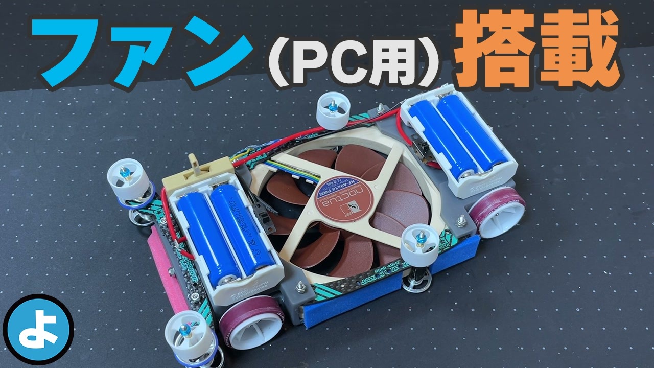 「CPUクーラーがミニ四駆に見える」というコメントから生まれた奇跡のマシン第2弾!PC用冷却ファン(Noctua)を搭載し、強制的にダウンフォースを発生させる「ファンカー」を製作しました。走行用モーター4個、電池4本、さらにファン用電源も別系統というロマン全振りの構成。果たして、強力なダウンフォースでLC(レーンチェンジ)をクリアできるのか?<br><br><br />📢お知らせ<br>・サポーターで応援お願いします!<br><a href="https://www.nicovideo.jp/user/127294841" target="_blank" rel="noopener nofollow">https://www.nicovideo.jp/user/127294841</a><br><br>・個性的なTシャツとか販売してます!<br><a href="https://up-t.jp/creator/669205729e975" target="_blank" rel="noopener nofollow">https://up-t.jp/creator/669205729e975</a><br><br>・BOOTHで3Dモデルを販売してます!<br><a href="https://noyosuke.booth.pm/" target="_blank" rel="noopener nofollow">https://noyosuke.booth.pm/</a><br><br>・X(Twitter)で筋トレとかやってます!<br><a href="https://twitter.com/NOYOSUKE_YASURI" target="_blank" rel="noopener nofollow">https://twitter.com/NOYOSUKE_YASURI</a><br><br>・ミニ四駆の記事をnoteに投稿しています!<br><a href="https://note.com/noyosuke_yasuri/" target="_blank" rel="noopener nofollow">https://note.com/noyosuke_yasuri/</a><br><br>・YouTubeにも投稿しています!<br><a href="https://www.youtube.com/@NOSUKE_DIYPC" target="_blank" rel="noopener nofollow">https://www.youtube.com/@NOSUKE_DIYPC</a><br><a href="https://www.youtube.com/@YOSUKE_MINI4WD" target="_blank" rel="noopener nofollow">https://www.youtube.com/@YOSUKE_MINI4WD</a><br><br><br>🎵BGM、SE、画像<br> ・DOVA-SYNDROME<br><a href="https://dova-s.jp/" target="_blank" rel="noopener nofollow">https://dova-s.jp/</a><br><br> ・いらすとや<br><a href="https://www.irasutoya.com/" target="_blank" rel="noopener nofollow">https://www.irasutoya.com/</a><br><br>・甘茶の音楽工房<br><a href="https://amachamusic.chagasi.com/" target="_blank" rel="noopener nofollow">https://amachamusic.chagasi.com/</a><br><br>・効果音ラボ<br><a href="https://soundeffect-lab.info/" target="_blank" rel="noopener nofollow">https://soundeffect-lab.info/</a><br><br>・魔王魂<br><a href="https://maou.audio/category/bgm/" target="_blank" rel="noopener nofollow">https://maou.audio/category/bgm/</a><br><br><br>📸撮影協力<br>・ハイジャ(SL60ⅡD)<br><a href="https://x.com/ZJtbAjYyiACgX4T" target="_blank" rel="noopener nofollow">https://x.com/ZJtbAjYyiACgX4T</a><br><br>・VOICEVOX:ずんだもん達