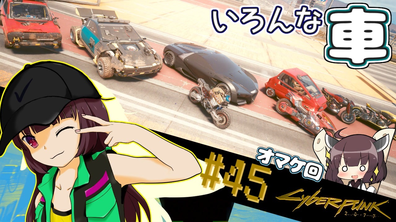 オマケ回という名の、飛ばしても大丈夫なやつ。<br>スポーツカーとバイクを中心に、レースでは使用しなかった車たちを紹介していきます。<br>乗り比べたのしい。<br><br>今回は特に画面酔い注意。<br>酔いそうだと思った時は、きりたんでも眺めて適度に三半規管を休めて下さい。<br><br> <a href="https://www.nicovideo.jp/watch/sm41879580" class="watch">sm41879580</a>←前 次→<a href="https://www.nicovideo.jp/watch/sm41984929" class="watch">sm41984929</a><br> サイバーパンク2077:<a href="https://www.nicovideo.jp/mylist/72929717" target="_blank" rel="noopener">mylist/72929717</a><br><br> きりたん実況part1集:<a href="https://www.nicovideo.jp/mylist/65852559" target="_blank" rel="noopener">mylist/65852559</a><br><br><br>VOICEVOX青山龍星(<a href="https://voicevox.hiroshiba.jp/)" target="_blank" rel="noopener nofollow">https://voicevox.hiroshiba.jp/)</a><br><br>プレイ環境<br> Ver1.61 PC版 難易度ベリーハード not初見<br> modは画質系・美肌系modを使用<br> ゲームバランスに影響の出るものは使用していません<br> 解説等はにわか知識ですので、間違っている箇所も有ると思います。<br> 適当に聞き流して下さい。<br><br> 数年落ちのPCながらも、そこそこ快調に動作中(720p/60fps)<br> CPU i7-6700 / グラボ GTX1060