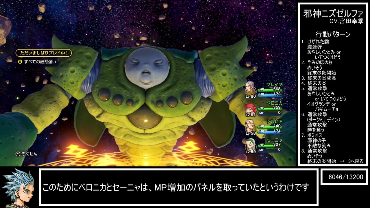 ドラクエ11Sで縛りプレイ「すべての敵が強い」を付けた状態でのRTA<br>計測区間は「冒険の書をつくる」から「やっつけた!」の表示まで<br>ネタバレありです、悪しからず<br><br>追加のレベル上げなしでニズゼルファ倒す回<br><br>part1→<a href="https://www.nicovideo.jp/watch/sm41694300" class="watch">sm41694300</a><br>次→シリーズからよろしく、概要欄の一番下にあるよ<br>これのマイリス→<a href="https://www.nicovideo.jp/mylist/74515760" target="_blank" rel="noopener">mylist/74515760</a><br>無編集垂れ流し→<a href="https://youtu.be/VGAHwakOxtw" target="_blank" rel="noopener nofollow">https://youtu.be/VGAHwakOxtw</a><br>うp動画まとめ→<a href="https://www.nicovideo.jp/mylist/71230916" target="_blank" rel="noopener">mylist/71230916</a><br><br>※この動画の一部または全部を外部サイト等へ転載することを禁じます。<br> 動画紹介等で動画の一部を引用するのは構いません。<br><br>この動画で利用している株式会社スクウェア・エニックスを代表とする共同著作者が権利を所有する著作物及びスギヤマ工房有限会社が権利を所有する楽曲の転載・配布は禁止いたします。<br>(C) ARMOR PROJECT/BIRD STUDIO/SQUARE ENIX All Rights Reserved.<br>(C) SUGIYAMA KOBO (P) SUGIYAMA KOBO