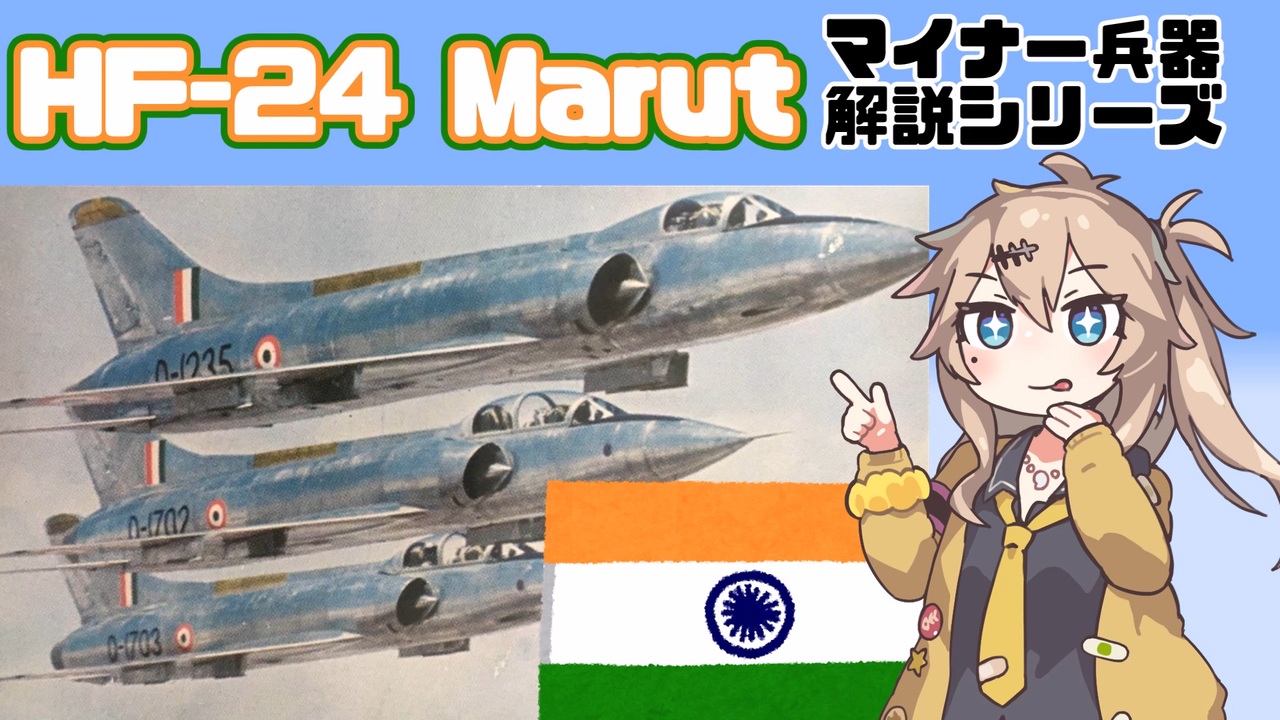 作業量全然減ってねーじゃーん!!全然ストレス解消できてねーじゃん!!!<br>なので多分2,3週間ほどサボって、他の動画作ります。ゆるして。<br><br><a href="https://www.nicovideo.jp/mylist/74547937" target="_blank" rel="noopener">mylist/74547937</a><br>字幕がついてて、参考文献リストも多いYoutube版→<a href="https://youtu.be/0YXfKOdl-is" target="_blank" rel="noopener nofollow">https://youtu.be/0YXfKOdl-is</a><br><br>参考文献:<br>英語版Wikipedia<br>夕撃旅団 「2018 21世紀のインドの旅 -■3/11 インド空軍博物館 2-」<br><a href="http://majo44.sakura.ne.jp/trip/2018india/311/22.html" target="_blank" rel="noopener nofollow">http://majo44.sakura.ne.jp/trip/2018india/311/22.html</a><br><br>蛇乃目伍長の「エアフォースの英国面に来い!」 Mk.2<br>「HF-24 マルート グライダープロトタイプ」<br><a href="http://blog.livedoor.jp/janome_gotyou/archives/3238656.html" target="_blank" rel="noopener nofollow">http://blog.livedoor.jp/janome_gotyou/archives/3238656.html</a><br><br>BHARAT RAKSHAK「No.10 Squadron」<br><a href="https://www.bharat-rakshak.com/IAF/units/squadrons/10-squadron-daggers/" target="_blank" rel="noopener nofollow">https://www.bharat-rakshak.com/IAF/units/squadrons/10-squadron-daggers/</a><br><br>BHARAT RAKSHAK「HAL HF-24 Marut – Where the wind blows」<br><a href="https://www.bharat-rakshak.com/IAF/aircraft/past/marut-polly/" target="_blank" rel="noopener nofollow">https://www.bharat-rakshak.com/IAF/aircraft/past/marut-polly/</a><br><br>Hush-Kit「Flying & fighting in the HAL HF-24 Marut: Interview with IAF pilot Vijainder K Thakur」<br><a href="https://hushkit.net/2019/10/30/flying-fighting-in-the-hal-hf-24-marut-interview-with-iaf-pilot-vijainder-k-thakur/" target="_blank" rel="noopener nofollow">https://hushkit.net/2019/10/30/flying-fighting-in-the-hal-hf-24-marut-interview-with-iaf-pilot-vijainder-k-thakur/</a><br><br>Quora「Can the design of the HF-24 Marut be used in today's era?」<br><a href="https://www.quora.com/Can-the-design-of-the-HF-24-Marut-be-used-in-todays-era" target="_blank" rel="noopener nofollow">https://www.quora.com/Can-the-design-of-the-HF-24-Marut-be-used-in-todays-era</a><br><br><br>使用BGM:アヒルのテーマ(鋼鉄の咆哮3より)<br><br>背景映像:昭和56年防衛庁記録<br><a href="https://www.youtube.com/watch?v=_MF8zGUFn_Y&ab_channel=modchannel" target="_blank" rel="noopener nofollow">https://www.youtube.com/watch?v=_MF8zGUFn_Y&ab_channel=modchannel</a><br><br>いらすと:いらすとや様
