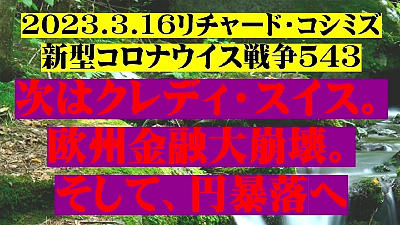 <span style="color: #cc4125;"><strong>「 テーマ : 新型コロナウイルス戦争 543 」</strong></span><br><br><span style="color: #ff0000;"><strong>「 次は、『 クレディ・スイス 』。『 欧州金融大崩壊 』。そして、『 円暴落 』へ 」</strong></span><br><br><span style="color: #0000ff;"><strong>「『 イベルメクチン・アビガン・その他コロナ対策 』について、ご意見をお寄せ下さい! 」<br><br>◐ E-mail:richardkoshimizu@gmail.com</strong></span><br><br><strong>◐「クリエイター・サポート」・「ニコニ広告」・「フォロー」等、ご協力の程宜しくお願い致します。RK</strong><br><br><span style="color: #38761d;"><strong>◐ リチャード・コシミズ 講演会 公式 動画ギャラリー</strong></span><br> <a href="http://www.t-sskk.com/richardkoshimizu/video-gallery/index.html" target="_blank" rel="noopener nofollow">http://www.t-sskk.com/richardkoshimizu/video-gallery/index.html</a><br><br><span style="color: #38761d;"><strong>◐ リチャード・コシミズ 講演会 ニコニコ生放送 LIVE</strong></span><br> <a href="https://bit.ly/3Bx8F5w" target="_blank" rel="noopener nofollow">https://bit.ly/3Bx8F5w</a><br><br><span style="color: #38761d;"><strong>◐ リチャード・コシミズ 公式 ブログ</strong></span><br> <a href="http://08054623210.jugem.jp/" target="_blank" rel="noopener nofollow">http://08054623210.jugem.jp/</a><br><br><span style="color: #38761d;"><strong>◐ リチャード・コシミズ 公式 ホームページ<br> </strong></span><a href="http://richardkoshimizu.boo.jp/" target="_blank" rel="noopener nofollow">http://richardkoshimizu.boo.jp/</a><br><br><span style="color: #38761d;"><strong>◐ リチャード・コシミズ 公式 Twitter</strong></span><br> <a href="https://twitter.com/rickoshimizu" target="_blank" rel="noopener nofollow">https://twitter.com/rickoshimizu</a><br><br><span style="color: #38761d;"><strong>◐ リチャード・コシミズ オンライン ショップ</strong></span><br> <a href="https://rkonline.shop-pro.jp/" target="_blank" rel="noopener nofollow">https://rkonline.shop-pro.jp/</a><br>