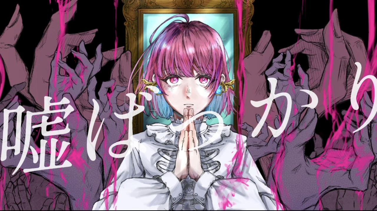 <span style="color: #980000; font-size: 18px;"><strong>「愛してます」</strong></span><br>その一言で救われるので、少しでもいいなと思ったらそうコメントいただけると嬉しいです。<br><br>寿命を削って作った作品ですので、一つでも多くのマイリスといいね、コメントをいただけるとこれからも生きていけます。<br><br>MUSIC・MOVIE えんじ<br>twitter : <a href="https://twitter.com/EnzI_Dayo_" target="_blank" rel="noopener nofollow">https://twitter.com/EnzI_Dayo_</a><br>ILLUST 宇 空<br>twitter : <a href="https://twitter.com/usora070400" target="_blank" rel="noopener nofollow">https://twitter.com/usora070400</a><br><br><span style="font-size: 18px;">嘘ばっかり</span><br><br>鏡よ鏡のこの世界で<br>1番の嘘つきは誰だ?<br>ファンデーション<br><br>脱ぎ捨てたピンクのミュールで<br>意図を解き明かすのはナンセンス<br>黒に黒を塗り重ねただけの<br>価値観に理解者はいないでしょう<br>ねぇ<br><br>ご都合主義な解釈の雑踏<br>側面的理解故に葛藤<br>軽率な判断に合掌<br>代替品の代替で代用<br>損得勘定自問自答<br><br>鏡よ鏡答えてよいっそ<br><br>それは愛ですか<br>病めぬ哀ですか<br>錆びた命を道化して<br>慣れた手つきで<br>ただサレンダーして<br>使い廻しのワタシは優等生<br>それは南無阿弥陀仏<br>飾らない名画<br>擦れたアナタにお似合いね<br>枯れた手口に<br>騙されないでよ<br><br>あーもう<br>欲張って選んでられないわ<br>やーもう<br>有象無象を嗤った天罰<br><br>鏡よ鏡神神<br>これは何に見えてますか<br>鏡よ鏡病病<br>私何を愛せますか<br><br>どうですか<br>これは愛ですか<br>言葉すると消えてしまうから<br>塗り潰す黒に<br>胸が痛むのでしょう<br>本心は言わば双曲線<br>躊躇う程に哀を成して<br>踏みつけた心の破片が突き刺さる<br><br>それは愛ですか<br>捨てる神ですか<br>ゴミ箱はもういっぱいです<br>されど運命は<br>まだ辞めんなって<br>御伽話の世界も散々ね<br>踊らないですか<br>忘れないですか<br>他人行儀でお終いね<br>差し出すなら<br>離さないでよ<br>今だけなら構わないでしょ<br><br><br><span style="font-size: 16px;">歌ってください!</span><br>off_vocal :<a href="https://piapro.jp/my_page/?view=content&pid=enzi" target="_blank" rel="noopener nofollow">https://piapro.jp/my_page/?view=content&pid=enzi</a><br><br><a target="_blank" href="https://qa.nicovideo.jp/faq/show/19424?site_domain=default" style="font-size: 13px;color: #657586; text-decoration: underline; line-height: 1.4">この動画は投稿者によって修正されました</a>
