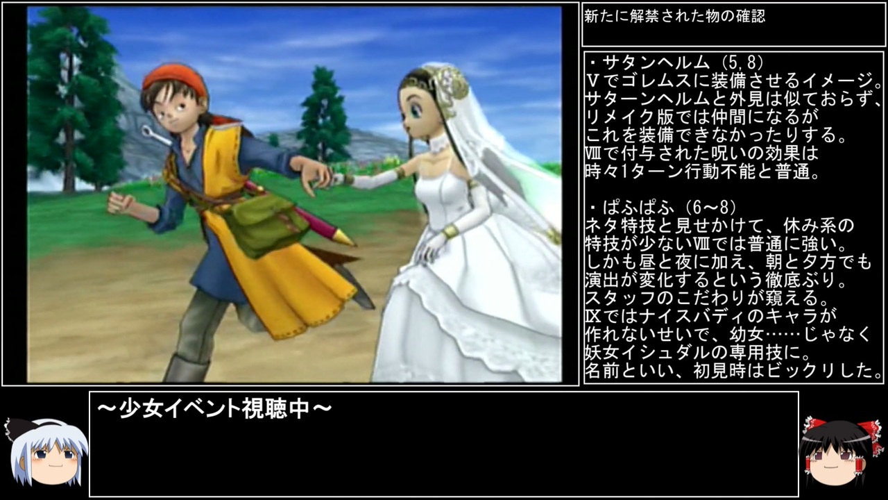 ここ一ヶ月は自由に使える時間の95%以上を動画編集に費やし続けてました。<br>それもようやく一段落ついたので、これでまたドラクエの縛りプレイで遊べます(ん?)<br><br>前→<a href="https://www.nicovideo.jp/watch/sm41960428" class="watch">sm41960428</a> 次→<a href="https://www.nicovideo.jp/watch/sm41965719" class="watch">sm41965719</a><br><br>YouTube版→<a href="https://youtu.be/P4aJTR_9REw" target="_blank" rel="noopener nofollow">https://youtu.be/P4aJTR_9REw</a><br><br><br>※動画の大きさが変わる方は、お手数ですが設定→画質を自動から〇pに変えると解決します。<br>※一部機種は互換機を使用してのプレイとなります。<br><br>縛りルール(不明点はシリーズのQ&Aを参照)<br>①使った武器・防具・装飾品・道具・呪文・特技・一部特殊施設(メダル王・カジノ・移民の町)・職業(3,6,7)・仲間モンスター(4,5,6,8+7の職業)は次以降のシリーズで使用禁止。<br>(NPCキャラが使用した装備や呪文を含む。売却及び錬金素材としても使用扱い)<br><br>②裏技・バグ技の禁止。<br><br>③逃走禁止&戦闘終了時は全員生存。<br><br>④レベルを上げ過ぎない。<br>ダンジョンやボスは公式ガイドブックに記載されたレベル+3まで。<br>ラスボスは全ての呪文を習得するレベル+3程度までに収める。<br><br>⑤裏ボスも規定回数、規定ターン以内に倒す。<br>(6の裏ダンジョン突入時のみ、条件を満たすため①の職業を解禁)<br><br>(おまけ)<br>宝は可能なものに限り全回収。<br>5と6は同一モンスターの仲間不可。<br>回避可能なボスも全て倒す。<br><br><br>この動画で利用している株式会社スクウェア・エニックスを代表とする共同著作者が権利を所有する著作物及びスギヤマ工房有限会社が権利を所有する楽曲の転載・配布は禁止いたします。<br>(C) ARMOR PROJECT/BIRD STUDIO/SQUARE ENIX All Rights Reserved.<br>(C) SUGIYAMA KOBO (P) SUGIYAMA KOBO<br><br>AquesTalk2ライセンスID:AQTK2WINUSR23122185<br /><br><br>❤いいねを押していただけるとモチベーションと投稿速度が上がるので宜しくお願い致します!<br><br>作者ツイッター→ <a href="https://twitter.com/nig0117" target="_blank" rel="noopener nofollow">https://twitter.com/nig0117</a><br>PIXIV FANBOX→ <a href="https://sutanokeiji.fanbox.cc/" target="_blank" rel="noopener nofollow">https://sutanokeiji.fanbox.cc/</a><br><br>( 以前はWEB小説書いてました→ <a href="https://kakuyomu.jp/works/1177354054884910267" target="_blank" rel="noopener nofollow">https://kakuyomu.jp/works/1177354054884910267</a> )