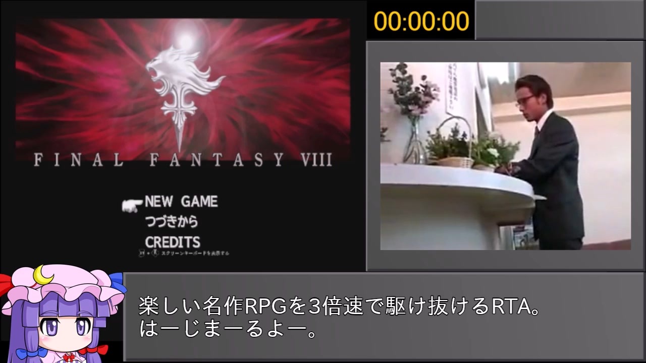 長編RPGのRTAは初投稿です。<br><br>スタート ~ SeeD試験終了<br><br>次→<a href="https://www.nicovideo.jp/watch/sm41966768" class="watch">sm41966768</a><br>マイリスト→<a href="https://www.nicovideo.jp/mylist/74900387" target="_blank" rel="noopener">mylist/74900387</a><br><br>この動画はSteam版FF8REMASTEREDを3倍速でクリアするまでの<br>タイムを計測したRTA動画です。<br>計測開始:NEW GAMEを押した時<br>計測終了:ラスボスに最後の一撃を与えた時<br><br>禁止事項<br>・3倍速モード以外の公式チート(バトル強化、エンカウントなし機能)<br>・ブースト機能(全アイテム獲得、所持金カンスト、全カード入手 等)<br>・マルチジャンクション<br><br>追記(2023/04/08)<br>kuei兄貴 藍弐斎兄貴 Newfield兄貴 かなしきよせあつめ兄貴 空蜂ミドロ兄貴<br>カップケーキ兄貴 戦いは数だよ兄貴 ツカサ兄貴 voidmay兄貴 ゲスト兄貴(10名)<br>ばんじー兄貴 広告ありがとナス!<br><br>© 1999, 2019 SQUARE ENIX CO., LTD. All Rights Reserved.<br>CHARACTER DESIGN: TETSUYA NOMURA<br>LOGO ILLUSTRATION:© 1999 YOSHITAKA AMANO