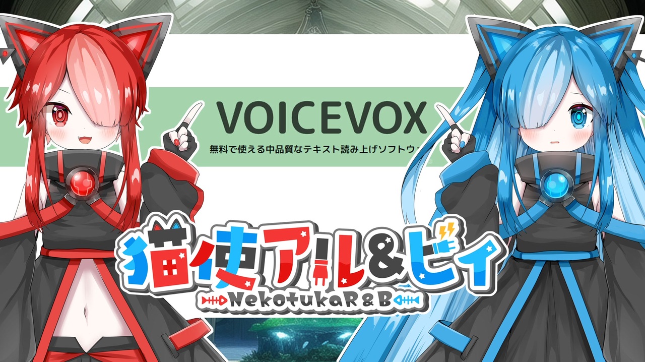 <span style="color: #93c47d; font-size: 16px;"><strong>VOICEVOX</strong></span><span style="color: #262626; font-size: 16px;"><strong>にて3月30日より実装!</strong></span><br><br>VOICEVOX7期生の後半組として実装予定の「<span style="color: #ff0000;"><strong>猫使アル</strong></span>」と 「<span style="color: #3d85c6;"><strong>猫使ビィ</strong></span>」です。<br>3月に生まれたばかりの完全新キャラの合成音声です。<br><br>↓<span style="color: #6aa84f;"> </span><span style="color: #6aa84f;"><strong>VOICEVOX</strong></span> ↓<br><a href="https://voicevox.hiroshiba.jp/" target="_blank" rel="noopener nofollow">https://voicevox.hiroshiba.jp/</a><br><br>↓<span style="color: #434343;"><strong> 猫使公式HP</strong></span> ↓<br><a href="https://nekotukarb.wixsite.com/nekonohako" target="_blank" rel="noopener nofollow">https://nekotukarb.wixsite.com/nekonohako</a><br>↓<span style="color: #434343;"> </span><span style="color: #434343;"><strong>猫使公式Twitter</strong></span> ↓<br><a href="https://twitter.com/nekotukaRB" target="_blank" rel="noopener nofollow">https://twitter.com/nekotukaRB</a><br><br>VOICEVOXはヒホ(@hiho_karuta)様が開発した無料で中品質な音声合成ソフトです。<br>個人制作の動画はもちろん、商用での利用も可能です。<br><br>初期実装ではそれぞれ3種類ずつ音声が実装されます。<br>是非とも沢山の方におしゃべりさせてもらいたいです!<br>よろしくお願いします!<br><br>↓ <strong>公式フリー立ち絵 配布中</strong> ↓<br><a href="https://seiga.nicovideo.jp/seiga/im11154263?ref=pc_mypage_nicorepo" target="_blank" rel="noopener nofollow">https://seiga.nicovideo.jp/seiga/im11154263?ref=pc_mypage_nicorepo</a>