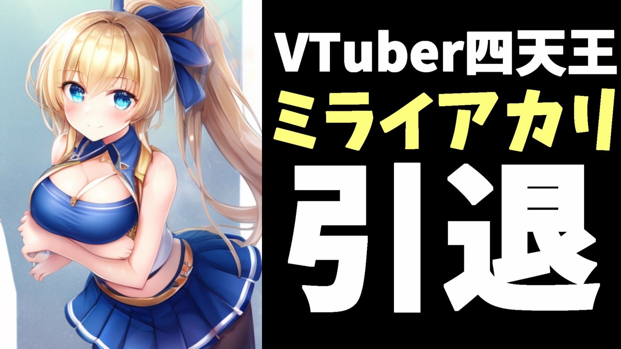 2023年3月24日、VTuber四天王のミライアカリさんが自身のツイッターアカウントより3月末での引退を発表されました。3月31日に最後の配信をされるとのことです。<br><br>サムネの画像はAIイメージです。<br><br>引用<br><a href="https://twitter.com/MiraiAkari_prj/status/1639190621373231106" target="_blank" rel="noopener nofollow">https://twitter.com/MiraiAkari_prj/status/1639190621373231106</a><br><br>Youtube <a href="https://www.youtube.com/@V_Virgin_Mary" target="_blank" rel="noopener nofollow">https://www.youtube.com/@V_Virgin_Mary</a><br>twitter <a href="https://twitter.com/V_Virgin_Mary" target="_blank" rel="noopener nofollow">https://twitter.com/V_Virgin_Mary</a><br><br>使用素材<br>高品質なフリー動画素材 - Pixabay <a href="https://pixabay.com/ja/videos" target="_blank" rel="noopener nofollow">https://pixabay.com/ja/videos</a>