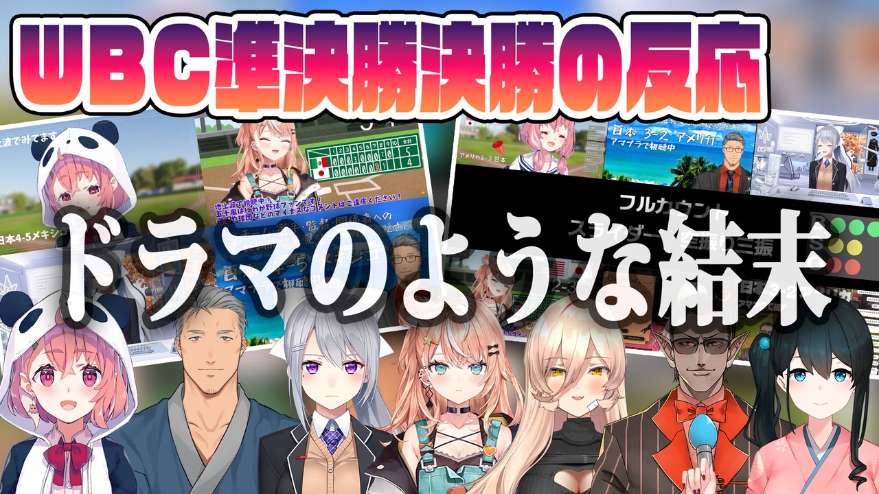 Youtubeにはすでにけっこうあげられてますが、ニコニコにはなかったのでWBC準決勝決勝の勝利決定シーンの同時視聴をまとめました<br><br>動画の内容関係なくWBCの思い出をぜひ書きこんで下さい!(「村上のホームランが良かった」など)<br><br>個人的にはトラウトVS大谷選手は妄想が現実となった感じでした<br><br><a href="#" class="seekTime" data-seekTime="0:00" onclick="seekNicoPlayer('#0:00'); return false;">#0:00</a> 日本VSメキシコ戦 村上宗隆の逆転サヨナラタイムリー<br><a href="#" class="seekTime" data-seekTime="1:42" onclick="seekNicoPlayer('#1:42'); return false;">#1:42</a> 日本VSアメリカ戦 トラウトVS大谷のシーン<br><br><br>●元配信はこちら↓(文字数の関係上決勝のみです)<br>WBC決勝戦!侍ジャパン応援同時視聴するぞ~!【【笹木咲/にじさんじ<br><a href="https://www.youtube.com/watch?v=qxIeUAcwHs0" target="_blank" rel="noopener nofollow">https://www.youtube.com/watch?v=qxIeUAcwHs0</a><br>WBC同時視聴□準決勝メキシコ戦□頑張れ侍JAPAN!!!【五十嵐梨花 / にじさんじ】<br><a href="https://www.youtube.com/watch?v=gLUTYYRFV18" target="_blank" rel="noopener nofollow">https://www.youtube.com/watch?v=gLUTYYRFV18</a><br>頑張れ侍ジャパン!準決勝 日本代表応援配信!!【にじさんじ/舞元啓介】<br><a href="https://www.youtube.com/watch?v=gwy9NFFnwhI" target="_blank" rel="noopener nofollow">https://www.youtube.com/watch?v=gwy9NFFnwhI</a><br>WBC準決勝!侍ジャパンvsメキシコ代表【にじさんじ / 樋口楓】<br><a href="https://www.youtube.com/watch?v=6nedyeHKU_g" target="_blank" rel="noopener nofollow">https://www.youtube.com/watch?v=6nedyeHKU_g</a><br>準決勝をちゃんと見れずくそくそ後悔した魔女【ニュイ・ソシエール/にじさんじ】<br><a href="https://www.youtube.com/watch?v=fragjPQVg6g" target="_blank" rel="noopener nofollow">https://www.youtube.com/watch?v=fragjPQVg6g</a><br>WBC決勝戦同時視聴【にじさんじ/グウェル・オス・ガール/小野町春香】<br><a href="https://www.youtube.com/watch?v=PNnnHAmdSxo" target="_blank" rel="noopener nofollow">https://www.youtube.com/watch?v=PNnnHAmdSxo</a><br><br>●登場ライバー<br>笹木咲<br><a href="https://www.youtube.com/@SasakiSaku" target="_blank" rel="noopener nofollow">https://www.youtube.com/@SasakiSaku</a><br>五十嵐梨花<br><a href="https://www.youtube.com/@IgarashiRika" target="_blank" rel="noopener nofollow">https://www.youtube.com/@IgarashiRika</a><br>舞元啓介<br><a href="https://www.youtube.com/@MaimotoKeisuke" target="_blank" rel="noopener nofollow">https://www.youtube.com/@MaimotoKeisuke</a><br>樋口楓<br><a href="https://www.youtube.com/@HiguchiKaede" target="_blank" rel="noopener nofollow">https://www.youtube.com/@HiguchiKaede</a><br>ニュイ・ソシエール<br><a href="https://www.youtube.com/@NuiSociere" target="_blank" rel="noopener nofollow">https://www.youtube.com/@NuiSociere</a><br>グウェル・オス・ガール<br><a href="https://www.youtube.com/@GweluOsGar" target="_blank" rel="noopener nofollow">https://www.youtube.com/@GweluOsGar</a><br>小野町 春香<br><a href="https://www.youtube.com/@OnomachiHaruka" target="_blank" rel="noopener nofollow">https://www.youtube.com/@OnomachiHaruka</a>