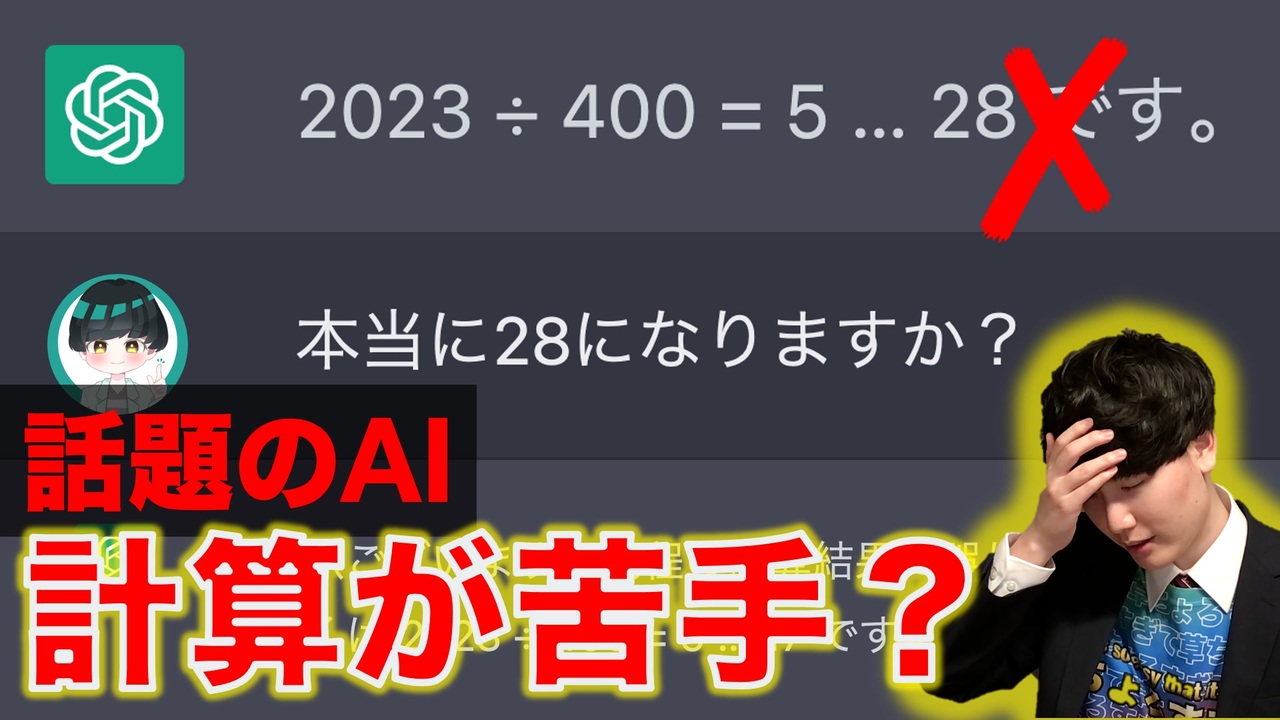 提供:Happy Hacking Keyboard(株式会社PFU)<br><br>動画に映っていたキーボードの詳細はこちら↓<br><a href="https://happyhackingkb.com/jp/news/promo/01/index.html?utm_medium=cpa&utm_source=youtuber_ads" target="_blank" rel="noopener nofollow">https://happyhackingkb.com/jp/news/promo/01/index.html?utm_medium=cpa&utm_source=youtuber_ads</a><br><br>【3/29(水)まで】AmazonでHHKB墨モデル2000円OFFクーポン発行中<br><a href="https://www.amazon.co.jp/stores/page/CA25FD8E-D15C-4F34-BFAB-480026112A77?ingress=2&visitId=5cd0c32f-bec8-4b50-a420-89485aabe3f8&ref_=ast_bln" target="_blank" rel="noopener nofollow">https://www.amazon.co.jp/stores/page/CA25FD8E-D15C-4F34-BFAB-480026112A77?ingress=2&visitId=5cd0c32f-bec8-4b50-a420-89485aabe3f8&ref_=ast_bln</a><br><br>ChatGPTが話題です。しかし、暗算するには地味にきついような計算問題が苦手なようで、計算を間違えるてしまうようです。そこで今回はどうすれば正しい答えを聞き出すことができるのかを考えてみました。<br><br>動画に映っていた文献↓<br>Transformer: <a href="https://arxiv.org/abs/1706.03762" target="_blank" rel="noopener nofollow">https://arxiv.org/abs/1706.03762</a><br>GPT: <a href="https://openai.com/research/language-unsupervised" target="_blank" rel="noopener nofollow">https://openai.com/research/language-unsupervised</a><br>GPT-3: <a href="https://arxiv.org/abs/2005.14165" target="_blank" rel="noopener nofollow">https://arxiv.org/abs/2005.14165</a><br>InstructGPT: <a href="https://arxiv.org/abs/2203.02155" target="_blank" rel="noopener nofollow">https://arxiv.org/abs/2203.02155</a><br>ChatGPT: <a href="https://openai.com/blog/chatgpt" target="_blank" rel="noopener nofollow">https://openai.com/blog/chatgpt</a><br /><br>★各種SNSリンク<br>Twitter: <a href="https://twitter.com/yoidea" target="_blank" rel="noopener nofollow">https://twitter.com/yoidea</a><br>Instagram: <a href="https://www.instagram.com/yoidea" target="_blank" rel="noopener nofollow">https://www.instagram.com/yoidea</a><br>TikTok: <a href="https://www.tiktok.com/@yoidea" target="_blank" rel="noopener nofollow">https://www.tiktok.com/@yoidea</a><br><br>★連絡先<br>お問い合わせフォーム: <a href="https://forms.gle/wJam18y3fUfZfrjFA" target="_blank" rel="noopener nofollow">https://forms.gle/wJam18y3fUfZfrjFA</a><br>PGP公開鍵: <a href="https://ラムダ.com/pgp" target="_blank" rel="noopener nofollow">https://ラムダ.com/pgp</a>