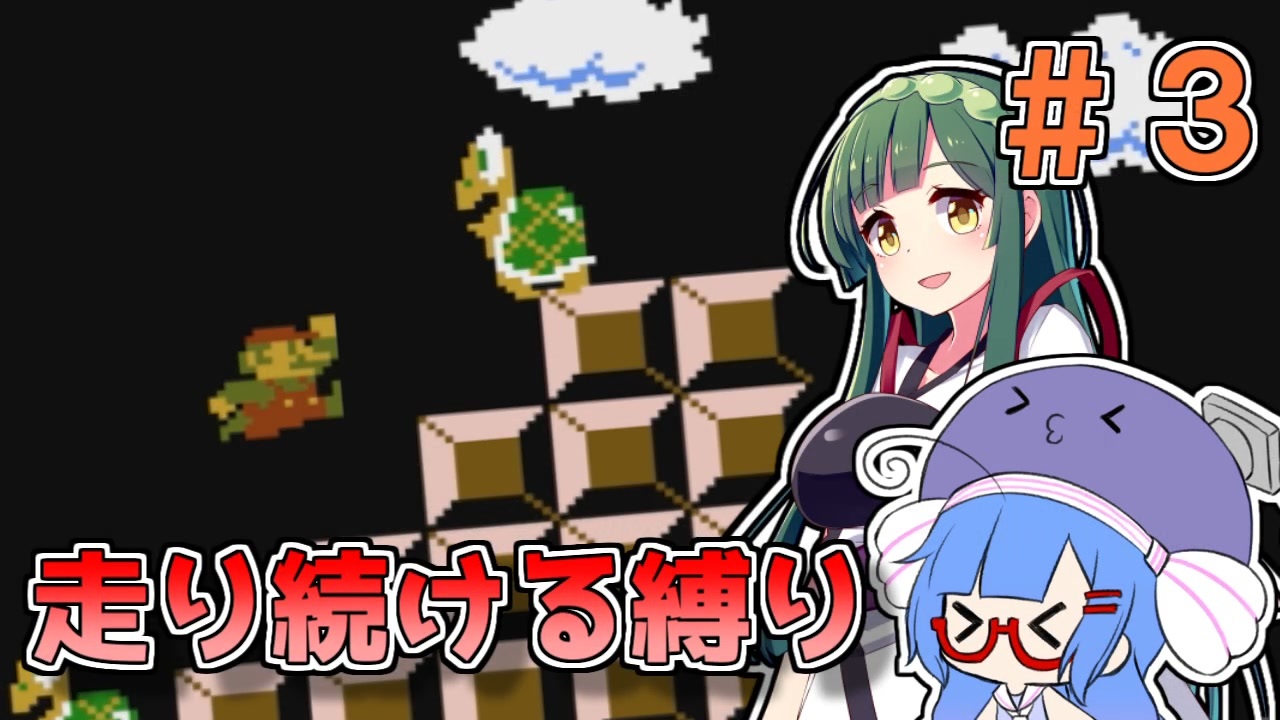 苦しんでそうですが楽しんでます、多分<br><br>初代スーパーマリオブラザーズを走り続ける縛りでプレイしていきます<br><br>■縛り内容<br>・プレイ中は常に十字キー右+Bボタンを押し続ける<br>・壁にぶつかって止まるの禁止<br>・上記の縛りを違反及びミスをした場合、ステージ頭からやり直し(中間地点の使用禁止)<br>・ステージ開始直前にどこでもセーブ使用可<br>※どうしても無理な場合、縛りを緩和します(迷路の城等)<br><br>■プレイ環境<br>Nintendo Switch Online<br><br>■担当<br>実況プレイ担当:東北ずん子<br>ガヤ担当:音街ウナ<br><br>使用させていただいた素材元様<br>blueberry様(東北ずん子立ち絵)<br><a href="https://seiga.nicovideo.jp/seiga/im5774001" target="_blank" rel="noopener nofollow">https://seiga.nicovideo.jp/seiga/im5774001</a><br>空どうふ様(音街ウナ立ち絵)<br><a href="https://seiga.nicovideo.jp/seiga/im8670690" target="_blank" rel="noopener nofollow">https://seiga.nicovideo.jp/seiga/im8670690</a><br>効果音ラボ様<br><a href="https://soundeffect-lab.info/" target="_blank" rel="noopener nofollow">https://soundeffect-lab.info/</a><br>OtoLogic様<br><a href="https://otologic.jp/" target="_blank" rel="noopener nofollow">https://otologic.jp/</a><br>フロップデザイン様(ラノベPOPフォント)<br><a href="https://flopdesign.booth.pm/items/2328262" target="_blank" rel="noopener nofollow">https://flopdesign.booth.pm/items/2328262</a><br>8:51:22 pm様(851フォントシリーズ)<br><a href="http://pm85122.onamae.jp/85122font.html" target="_blank" rel="noopener nofollow">http://pm85122.onamae.jp/85122font.html</a><br>いらすとや様<br><a href="https://www.irasutoya.com/" target="_blank" rel="noopener nofollow">https://www.irasutoya.com/</a><br>かまタマゴ様<br><a href="https://kamatamago.com/" target="_blank" rel="noopener nofollow">https://kamatamago.com/</a><br>ニコニコモンズの素材主様<br><br>twitter<br><a href="https://twitter.com/amanojakuSweets" target="_blank" rel="noopener nofollow">https://twitter.com/amanojakuSweets</a><br><br>前回 → <a href="https://www.nicovideo.jp/watch/sm41847990" class="watch">sm41847990</a><br>次回 → <a href="https://www.nicovideo.jp/watch/sm42092095" class="watch">sm42092095</a><br><br>走り続けるマリオマイリスト → <a href="https://www.nicovideo.jp/mylist/74622299" target="_blank" rel="noopener">mylist/74622299</a><br>単発動画マイリスト → <a href="https://www.nicovideo.jp/mylist/71749823" target="_blank" rel="noopener">mylist/71749823</a>