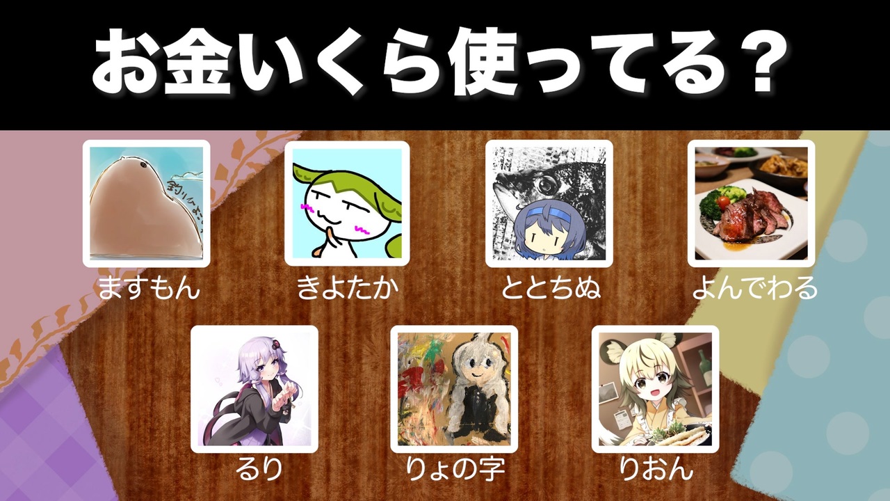 ボイロキッチン投稿者のみんなって動画のためにどれぐらいお金使ってるんだろうと思い調査して参りました<br>マイリストに各動画の詳細が書いてあるので見ていってくださいね<br><br><strong>調査期間:2/1~2/28<br><br>費用に含むもの→食材、動画のために新たに購入した調理器具や食器、船<br>費用に含まないもの→在庫食材、光熱費など</strong><br><br><span style="font-size: 16px;"><strong>協力者</strong></span><br><span style="color: #ff0000;"><strong>ますもん(<a href="https://www.nicovideo.jp/user/980198" target="_blank" rel="noopener">user/980198</a>)</strong></span><br><span style="color: #6aa84f;"><strong>きよたか(<a href="https://www.nicovideo.jp/user/10640801" target="_blank" rel="noopener">user/10640801</a>)</strong></span><br><span style="color: #0000ff;"><strong>ととちぬ(<a href="https://www.nicovideo.jp/user/54197577" target="_blank" rel="noopener">user/54197577</a>)</strong></span><br><span style="color: #6d9eeb;"><strong>よんでわる(<a href="https://www.nicovideo.jp/user/39323788" target="_blank" rel="noopener">user/39323788</a>)</strong></span><br><span style="color: #ff00ff;"><strong>るり(<a href="https://www.nicovideo.jp/user/94325320" target="_blank" rel="noopener">user/94325320</a>)</strong></span><br><span style="color: #ff9900;"><strong>りおん(<a href="https://www.nicovideo.jp/user/1949857" target="_blank" rel="noopener">user/1949857</a>)</strong></span><br><strong>りょの字(こいつ)</strong><br><br><span style="color: #ff0000; font-size: 18px;"><strong>調査対象動画一覧:<a href="https://www.nicovideo.jp/mylist/74952564" target="_blank" rel="noopener">mylist/74952564</a></strong></span>