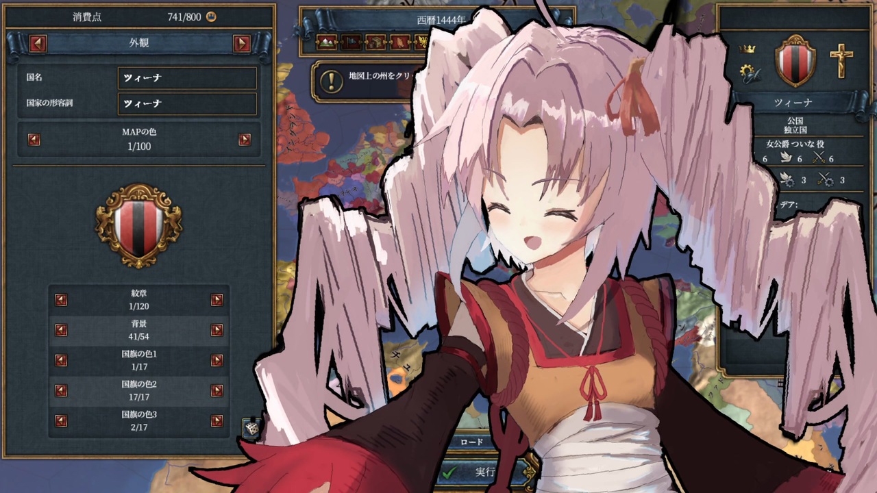 階級の法的権利は1回起きたら3年くらい再発生しないようにして(# ゚Д゚)<br><br>縛り内容<br>①持てる領土は1州のみ、西欧、東欧亜大陸の島以外の州から選択すること<br>②朝貢国以外の従属国の保有禁止<br>同君ができてしまったら速やかに破棄すること<br>③隣接州全てが同盟国の状況禁止(動画内ではいい忘れてたけど同盟国の従属国も同盟国と見做す)<br>同盟国の領土拡張などで縛り違反状態になったら速やかに同盟を破棄すること<br>④自由都市化禁止<br><br>Europa Universalis IV Copyright © 2013 Paradox Interactive AB. www.paradoxplaza.com<br><br>使った素材<br>AviUtl L-SMASH_Works x264guiEx PSDToolKit InputPipePlugin ティムの部屋bakusoku_aviutl_plugin 真・グループ制御<br><br>立ち絵;がじゃ豆 こーすけさんたまりあ<br>曲、効果音;ニコニ・コモンズ 甘茶の音楽工房<br>敬称略<br><br>version1.34.5<br>DLC Art of War, El Dorado, Common Sense, Rights of Man, Emperor,Dharma,The Cossacks,Third Rome,Mandate of Heaven,Leviathan,Digital Extreme Edition Upgrade Pack,Lions of the North,Cradle of Civilization<br><br>eu4過去作のpar/t1リスト<a href="https://www.nicovideo.jp/mylist/71271218" target="_blank" rel="noopener">mylist/71271218</a><br><br>ツイートしないツイッター<br><a href="https://twitter.com/gfd0y0iQLQa9YtF" target="_blank" rel="noopener nofollow">https://twitter.com/gfd0y0iQLQa9YtF</a>