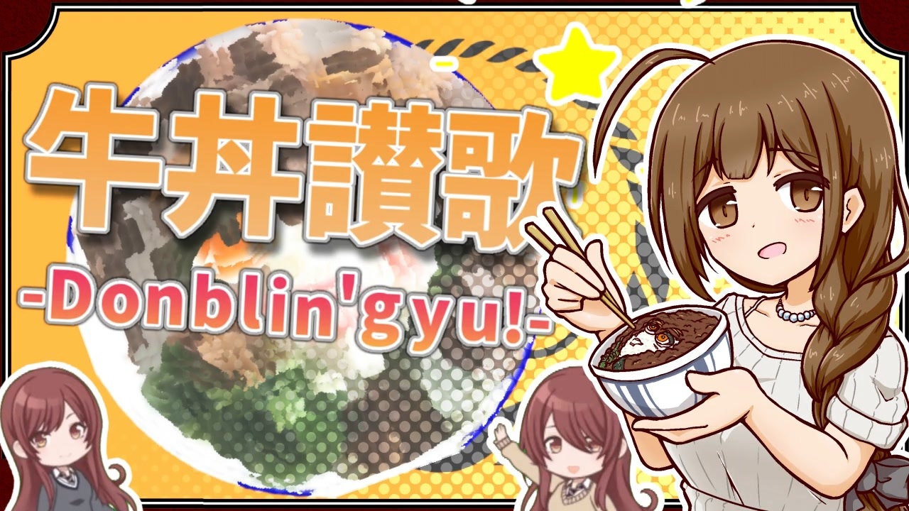 感情を失った通勤途中の社会人から、和気藹々とした家族連れ。客層が広いこの店は、食を通した社会の縮図だ。<br>メニューをテーブルに広げ、親と何を食すか迷う子供。<br>20年、30年後、成長したこの子はどんな思いでこの店に来るのだろうか。<br>きっとカウンターに座り、メニューにも触れずに「並。」と一言。長い目で人生を見る気力も失い、その日その日の仕事に振り回されるのだろう。<br><br>ある日の夜、桑山さんと牛丼屋に寄った。……というより彼女が牛丼屋に来るような人ではないので、「今日はこのへんで」と言わんばかりに別れるつもりで牛丼屋に行くと言った。<br>「わぁ!牛丼!」<br>ショービジネスの表舞台に立つ人が、牛丼に喜びを見せた。全く予想をしていなかった。<br>牛丼など、食に効率しか求めない私のような人間が食べるもの。彼女が牛丼屋に居るところを誰かに気づかれたら……。<br>そんな私の憂いなどよそに、桑山さんは見たことがない美しい蝶を見つけた少女のように瞳を輝かせ、迷いなく、しかしどこか慣れない手付きで紅生姜、七味唐辛子、溶き卵で目の前の牛丼を飾っていく。<br><br>古の日本において、上流階級に属する人々の食事は、主食とおかずを別々に配膳することを基本とした。<br>現代でも、食事に対して殊更に保守的な考え方を持つ人からは、「ご飯をおかずで汚してはならない」という意見もあるそうだ。<br>かくも白飯に神聖さを見出す者ならば、牛丼は邪道極まりなく見えるだろう。<br><br>しかし、食に貴賤を感じることなく、初めて目にする料理と冒険者のような気持ちで向き合う彼女を見た私は、牛丼が邪道なものとは思えなかった。<br><br>形式美の無い素朴な料理でも幸福を噛みしめる貴女が喜ぶなら、<br>歴史が浅くても、日々汗水流す人のために生まれたなら、<br>今日、こうして貴女と食事がとれるなら、<br><br>きっと牛丼も美しい逸品なのだろう。<br><br>―――皆、わたしの言うことを聞いて悟りなさい。 外から人の体に入るもので人を汚すことができるものは何もない―――<br>新約聖書 マルコによる福音書 第7章 14節~15節(抄)<br><br>作詞作曲・戦犯: ことぶき <a href="https://www.nicovideo.jp/user/65418333" target="_blank" rel="noopener">user/65418333</a><br>人力VOCALOID: まるきゅー <a href="https://www.nicovideo.jp/user/35798121" target="_blank" rel="noopener">user/35798121</a><br>動画・果穂(本物): にこほ(コホ) <a href="https://www.nicovideo.jp/user/118360999" target="_blank" rel="noopener">user/118360999</a><br>投コメ: 涼姫彼方 <a href="https://www.nicovideo.jp/user/117841562" target="_blank" rel="noopener">user/117841562</a><br>牛丼: しょーりんP <a href="https://www.nicovideo.jp/user/88293994" target="_blank" rel="noopener">user/88293994</a><br><br>