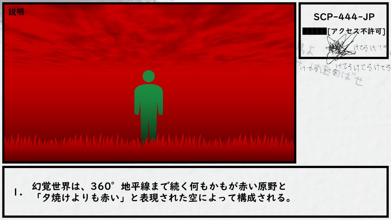 <span style="color: #ff0000;">あかしけ やなげ 緋色の鳥よ くさはみねはみ けをのばせ</span><br><br>本家記事 <a href="http://scp-jp.wikidot.com/scp-444-jp" target="_blank" rel="noopener nofollow">http://scp-jp.wikidot.com/scp-444-jp</a><br>作者 locker<br>SCP財団 <a href="http://scp-jp.wikidot.com" target="_blank" rel="noopener nofollow">http://scp-jp.wikidot.com</a><br>過去の動画はこちら <a href="https://www.nicovideo.jp/mylist/67620202" target="_blank" rel="noopener">mylist/67620202</a><br>CC-BY-SA 3.0