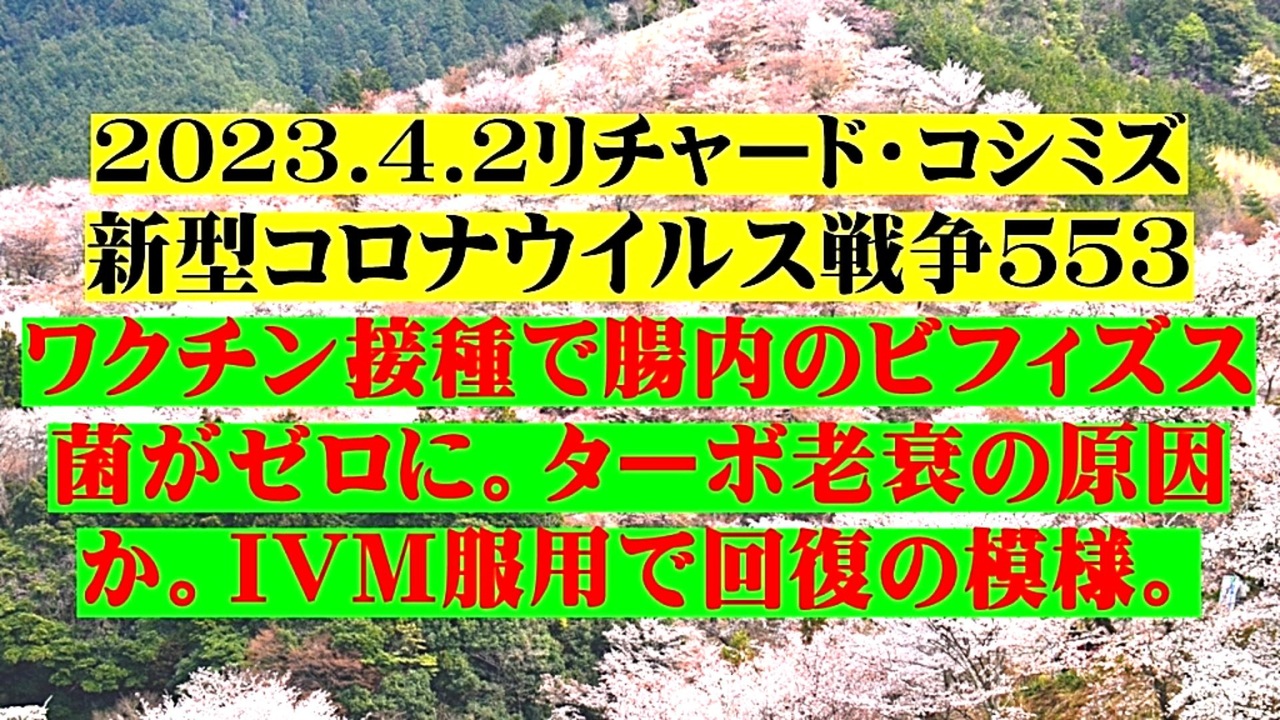 <span style="color: #cc4125;"><strong>「 テーマ : 新型コロナウイルス戦争 553 」</strong></span><br><br><span style="color: #ff0000;"><strong>「『 ワクチン接種 』で、『 腸内 』の『 ビフィズス菌 』が『 ゼロ 』に。『 ターボ老衰 』の『 原因 』か。<br> 『 イベルメクチン服用 』で『 回復 』の『 模様 』」</strong></span><br><br><span style="color: #0000ff;"><strong>「『 イベルメクチン・アビガン・その他コロナ対策 』について、ご意見をお寄せ下さい! 」<br><br> ◐ E-mail:richardkoshimizu@gmail.com</strong></span><br><br><strong>◐「クリエイター・サポート」・「ニコニ広告」・「フォロー」等、ご協力の程宜しくお願い致します。RK</strong><br><br><span style="color: #38761d;"><strong>◐ リチャード・コシミズ 講演会 公式 動画ギャラリー</strong></span><br> <span style="color: #38761d;"><strong><a href="http://www.t-sskk.com/richardkoshimizu/video-gallery/index.html" target="_blank" rel="noopener nofollow">http://www.t-sskk.com/richardkoshimizu/video-gallery/index.html</a><br><br>◐ リチャード・コシミズ 講演会 「 ニコニコ生放送『 LIVE 』」</strong></span><br> <span style="color: #38761d;"><strong><a href="https://bit.ly/3Bx8F5w" target="_blank" rel="noopener nofollow">https://bit.ly/3Bx8F5w</a><br><br>◐ リチャード・コシミズ 公式 ブログ</strong></span><br> <span style="color: #38761d;"><strong><a href="http://08054623210.jugem.jp/" target="_blank" rel="noopener nofollow">http://08054623210.jugem.jp/</a><br><br>◐ リチャード・コシミズ 公式 ホームページ<br> <a href="http://richardkoshimizu.boo.jp/" target="_blank" rel="noopener nofollow">http://richardkoshimizu.boo.jp/</a><br><br>◐ リチャード・コシミズ 公式 Twitter</strong></span><br> <span style="color: #38761d;"><strong><a href="https://twitter.com/rickoshimizu" target="_blank" rel="noopener nofollow">https://twitter.com/rickoshimizu</a></strong></span><br>
