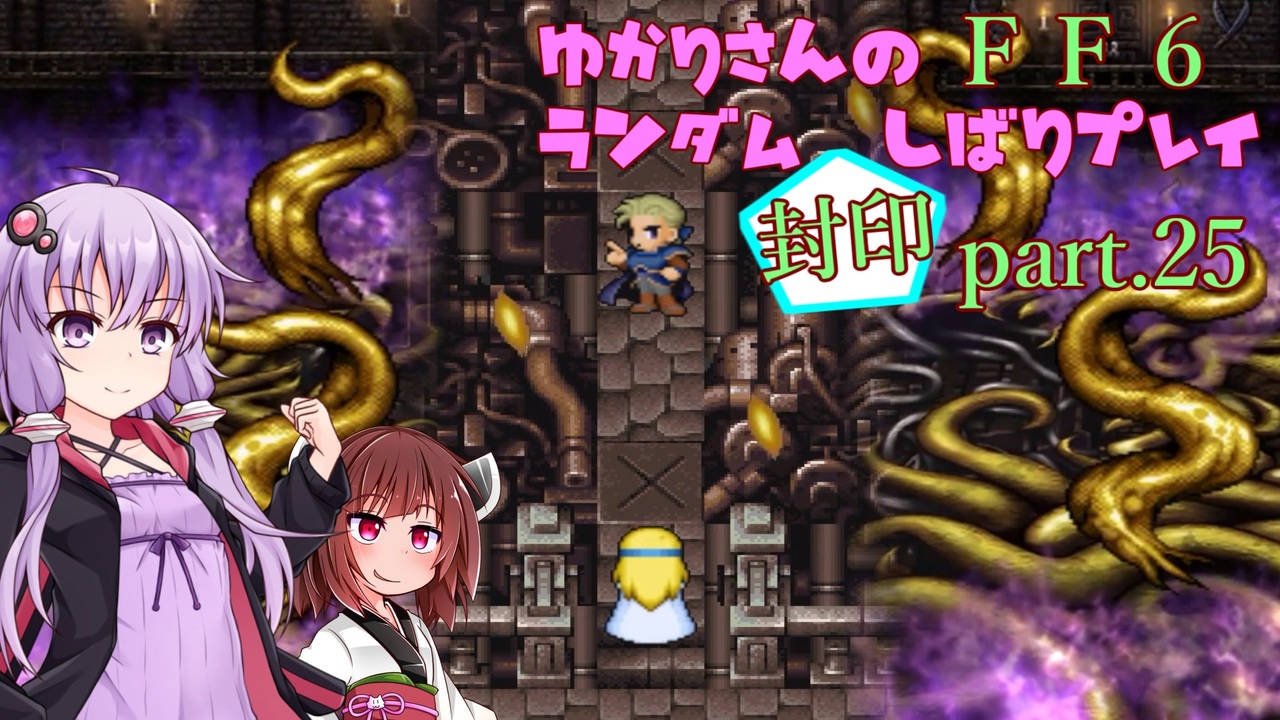 スマホ版FF6のランダム封印縛り第二十五回です。<br>(ピクセルリマスター版ではありません)<br><br>FF6の29周年には間に合わず1日遅れに…<br><br>同じくランダム封印縛りをされてるtane様(<a href="https://www.nicovideo.jp/user/122887574" target="_blank" rel="noopener">user/122887574</a>)から支援絵を頂きました。<br>可愛い。ありがとうございます。<br><a href="https://seiga.nicovideo.jp/seiga/im11143523" target="_blank" rel="noopener">im11143523</a><br><a href="https://seiga.nicovideo.jp/seiga/im11143517" target="_blank" rel="noopener">im11143517</a><br><br>tane様の「【ポケモンピカチュウ版】結月ゆかりが琴葉姉妹といくよ!ランダム封印縛り!」<br><a href="https://www.nicovideo.jp/series/316220" target="_blank" rel="noopener">series/316220</a><br><br>【ルール及び目標】<br>・1レベルアップで1封印<br>・歩数ガバ1回で1封印<br>・5の倍数の封印は取得済、習得済から抽選<br>・封印物は売却可、コロシアム可<br>・アイテムコンプリート(だいじなもの除く)<br>・魔石コンプリート<br>・魔法と暴れる以外のアビリティコンプリート<br>・仲間は全員揃える<br>・なるべく低歩数<br>・バグ技は使わない<br><br>【お借りした立ち絵や素材】<br>ああつ様 <a href="https://seiga.nicovideo.jp/seiga/im11006070" target="_blank" rel="noopener">im11006070</a><br>カロ様 <a href="https://seiga.nicovideo.jp/seiga/im10829162" target="_blank" rel="noopener">im10829162</a><br>そんそん様 <a href="https://seiga.nicovideo.jp/seiga/im9498309" target="_blank" rel="noopener">im9498309</a><br>デムサト様 <a href="https://seiga.nicovideo.jp/seiga/im10682961" target="_blank" rel="noopener">im10682961</a>(文字部分)<br>nakatomi様 <a href="https://seiga.nicovideo.jp/seiga/im10742089" target="_blank" rel="noopener">im10742089</a>、<a href="https://seiga.nicovideo.jp/seiga/im11112248" target="_blank" rel="noopener">im11112248</a><br>夏樹テル様 <a href="https://seiga.nicovideo.jp/seiga/im7077733" target="_blank" rel="noopener">im7077733</a>、<a href="https://seiga.nicovideo.jp/seiga/im9245138" target="_blank" rel="noopener">im9245138</a><br><br>【先駆者様】<br>ほっしゅ様 「スペマリ 封印縛り」<a href="https://www.nicovideo.jp/series/392845" target="_blank" rel="noopener">series/392845</a><br>うだまん様 「完全ランダム封印でFF6を通常プレイ」<a href="https://www.nicovideo.jp/series/222220" target="_blank" rel="noopener">series/222220</a><br><br>前回:<a href="https://www.nicovideo.jp/watch/sm41499649" class="watch">sm41499649</a><br>一覧:<a href="https://www.nicovideo.jp/series/229325" target="_blank" rel="noopener">series/229325</a><br><br>他動画シリーズもよろしくお願いします。<br>デュエルリンクス:<a href="https://www.nicovideo.jp/series/36738" target="_blank" rel="noopener">series/36738</a><br>ディグダ縛り(ポケモン盾):<a href="https://www.nicovideo.jp/series/141165" target="_blank" rel="noopener">series/141165</a><br>マスターデュエル:<a href="https://www.nicovideo.jp/series/141164" target="_blank" rel="noopener">series/141164</a><br><br><a target="_blank" href="https://qa.nicovideo.jp/faq/show/19424?site_domain=default" style="font-size: 13px;color: #657586; text-decoration: underline; line-height: 1.4">この動画は投稿者によって修正されました</a>
