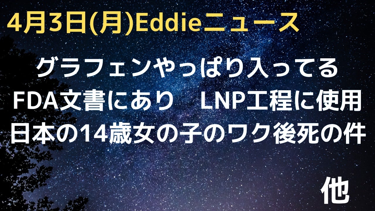 参考URL<br><a href="https://expose-news.com/2023/04/02/fda-confirms-graphene-is-in-the-covid-vaccines/" target="_blank" rel="noopener nofollow">https://expose-news.com/2023/04/02/fda-confirms-graphene-is-in-the-covid-vaccines/</a><br><br><a href="https://www.sciencedirect.com/science/article/pii/S1344622323000548" target="_blank" rel="noopener nofollow">https://www.sciencedirect.com/science/article/pii/S1344622323000548</a><br />Eddieと申します。<br>少し引棒めいたニュースを集めて喋っています。<br>よろしくお願いします。<br><br>23時過ぎYouTubeライブ配信(マイペース配信中)<br>「Eddieのホンマやと思うニュース3」<br><a href="https://www.youtube.com/channel/UCKaftD6X-qeHC5Vd9CMCedw" target="_blank" rel="noopener nofollow">https://www.youtube.com/channel/UCKaftD6X-qeHC5Vd9CMCedw</a><br><br>ニコ生は毎週土曜21時半〜(もしくは日曜21時半〜)<br><br>twitter<br>@Eddie2travel<br><br>YouTubeライブ配信1000回記念グッズなど販売中<br><a href="https://suzuri.jp/Eddie-Homma3" target="_blank" rel="noopener nofollow">https://suzuri.jp/Eddie-Homma3</a><br><br>