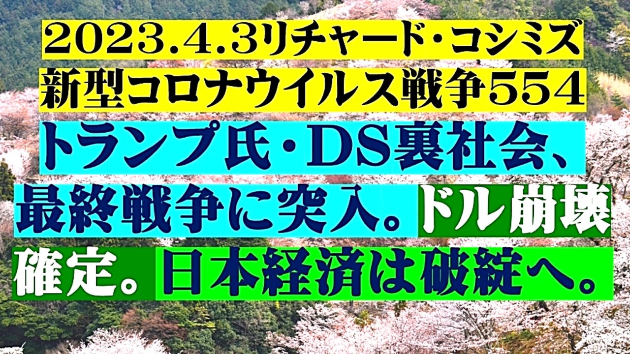 <span style="color: #cc4125;"><strong>「 テーマ : 新型コロナウイルス戦争 554 」( 前半 )</strong></span><br><br><span style="color: #ff0000;"><strong>「『 ドナルド・トランプ氏 』・『 DEEP STATE裏社会 』、『 最終戦争 』に『 突入 』。<br> 『 ドル崩壊確定 』。『 日本経済 』は『 破綻 』へ 」</strong></span><br><br><span style="color: #0000ff;"><strong>「『 イベルメクチン・アビガン・その他コロナ対策 』について、ご意見をお寄せ下さい! 」<br><br> ◐ E-mail:richardkoshimizu@gmail.com</strong></span><br><br><strong>◐「クリエイター・サポート」・「ニコニ広告」・「フォロー」等、ご協力の程宜しくお願い致します。RK</strong><br><br><span style="color: #38761d;"><strong>◐ リチャード・コシミズ 講演会 公式 動画ギャラリー</strong></span><br> <span style="color: #38761d;"><strong><a href="http://www.t-sskk.com/richardkoshimizu/video-gallery/index.html" target="_blank" rel="noopener nofollow">http://www.t-sskk.com/richardkoshimizu/video-gallery/index.html</a><br><br>◐ リチャード・コシミズ 講演会 「 ニコニコ生放送『 LIVE 』」</strong></span><br> <span style="color: #38761d;"><strong><a href="https://bit.ly/3Bx8F5w" target="_blank" rel="noopener nofollow">https://bit.ly/3Bx8F5w</a><br><br>◐ リチャード・コシミズ 公式 ブログ</strong></span><br> <span style="color: #38761d;"><strong><a href="http://08054623210.jugem.jp/" target="_blank" rel="noopener nofollow">http://08054623210.jugem.jp/</a><br><br>◐ リチャード・コシミズ 公式 ホームページ<br> <a href="http://richardkoshimizu.boo.jp/" target="_blank" rel="noopener nofollow">http://richardkoshimizu.boo.jp/</a><br><br>◐ リチャード・コシミズ 公式 Twitter</strong></span><br> <span style="color: #38761d;"><strong><a href="https://twitter.com/rickoshimizu" target="_blank" rel="noopener nofollow">https://twitter.com/rickoshimizu</a></strong></span><br>