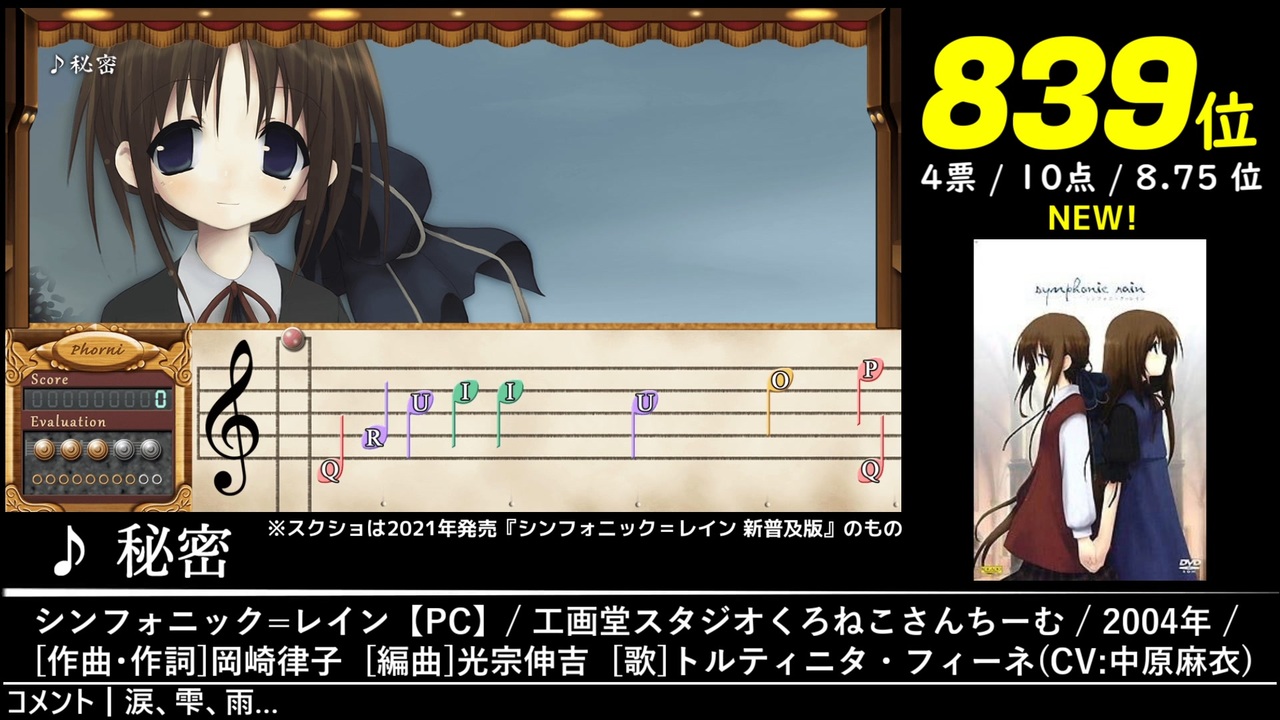 848位~828位の23曲を収録しています。<br>2022年5月1日~8月1日にかけて開催された「第15回みんなで決めるゲーム音楽ベスト100」の結果を動画化したものです。<span style="font-size: 10px;">集計人≠動画制作者</span><br><br>またまたまたまたまた素敵な応援イラストをいただきました!本当にありがとうございます!!!<br><br><br>↓全体の結果はこちら↓<br><a href="https://w.atwiki.jp/gamemusicbest100/pages/9902.html" target="_blank" rel="noopener nofollow">https://w.atwiki.jp/gamemusicbest100/pages/9902.html</a><br><br><br>※収録時間が5分以上の楽曲です。<br><a href="#" class="seekTime" data-seekTime="9:09" onclick="seekNicoPlayer('#9:09'); return false;">#9:09</a>~、<a href="#" class="seekTime" data-seekTime="59:37" onclick="seekNicoPlayer('#59:37'); return false;">#59:37</a>~<br><br><br>Part.6→<a href="https://www.nicovideo.jp/watch/sm42015200" class="watch">sm42015200</a><br>Part.8→<a href="https://www.nicovideo.jp/watch/sm42078593" class="watch">sm42078593</a><br>第15回まとめ→<a href="https://www.nicovideo.jp/mylist/74713060" target="_blank" rel="noopener">mylist/74713060</a><br><br><br>【ショートカット】<br>848位①<a href="#" class="seekTime" data-seekTime="0:40" onclick="seekNicoPlayer('#0:40'); return false;">#0:40</a>/848位②<a href="#" class="seekTime" data-seekTime="4:15" onclick="seekNicoPlayer('#4:15'); return false;">#4:15</a>/848位③<a href="#" class="seekTime" data-seekTime="6:21" onclick="seekNicoPlayer('#6:21'); return false;">#6:21</a>/846位①<a href="#" class="seekTime" data-seekTime="9:09" onclick="seekNicoPlayer('#9:09'); return false;">#9:09</a>/846位②<a href="#" class="seekTime" data-seekTime="14:26" onclick="seekNicoPlayer('#14:26'); return false;">#14:26</a>/845位<a href="#" class="seekTime" data-seekTime="16:35" onclick="seekNicoPlayer('#16:35'); return false;">#16:35</a>/843位①<a href="#" class="seekTime" data-seekTime="18:44" onclick="seekNicoPlayer('#18:44'); return false;">#18:44</a>/843位②<a href="#" class="seekTime" data-seekTime="21:12" onclick="seekNicoPlayer('#21:12'); return false;">#21:12</a>/841位①<a href="#" class="seekTime" data-seekTime="24:07" onclick="seekNicoPlayer('#24:07'); return false;">#24:07</a>/841位②<a href="#" class="seekTime" data-seekTime="26:02" onclick="seekNicoPlayer('#26:02'); return false;">#26:02</a>/839位①<a href="#" class="seekTime" data-seekTime="30:20" onclick="seekNicoPlayer('#30:20'); return false;">#30:20</a>/839位②<a href="#" class="seekTime" data-seekTime="34:35" onclick="seekNicoPlayer('#34:35'); return false;">#34:35</a>/838位<a href="#" class="seekTime" data-seekTime="36:51" onclick="seekNicoPlayer('#36:51'); return false;">#36:51</a>/837位<a href="#" class="seekTime" data-seekTime="39:24" onclick="seekNicoPlayer('#39:24'); return false;">#39:24</a>/834位①<a href="#" class="seekTime" data-seekTime="42:40" onclick="seekNicoPlayer('#42:40'); return false;">#42:40</a>/834位②<a href="#" class="seekTime" data-seekTime="45:07" onclick="seekNicoPlayer('#45:07'); return false;">#45:07</a>/834位③<a href="#" class="seekTime" data-seekTime="50:05" onclick="seekNicoPlayer('#50:05'); return false;">#50:05</a>/833位<a href="#" class="seekTime" data-seekTime="54:17" onclick="seekNicoPlayer('#54:17'); return false;">#54:17</a>/832位<a href="#" class="seekTime" data-seekTime="56:03" onclick="seekNicoPlayer('#56:03'); return false;">#56:03</a>/829位①<a href="#" class="seekTime" data-seekTime="57:50" onclick="seekNicoPlayer('#57:50'); return false;">#57:50</a>/829位②<a href="#" class="seekTime" data-seekTime="59:37" onclick="seekNicoPlayer('#59:37'); return false;">#59:37</a>/829位③<a href="#" class="seekTime" data-seekTime="64:39" onclick="seekNicoPlayer('#64:39'); return false;">#64:39</a>/828位<a href="#" class="seekTime" data-seekTime="67:08" onclick="seekNicoPlayer('#67:08'); return false;">#67:08</a>