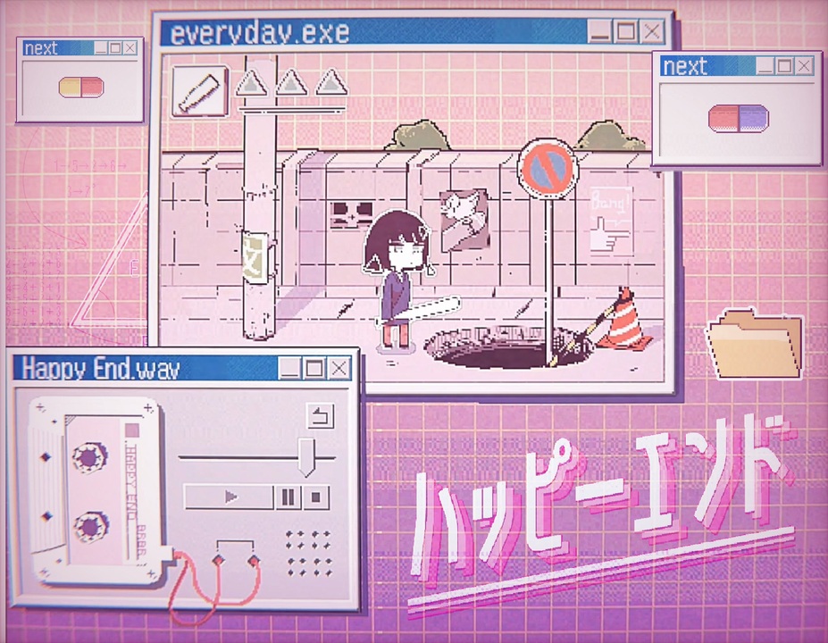 vocal : 初音ミク<br>music : バラバラ <a href="https://piapro.jp/bala_bala" target="_blank" rel="noopener nofollow">https://piapro.jp/bala_bala</a><br>movie : はこ <a href="https://www.nicovideo.jp/user/128497266" target="_blank" rel="noopener nofollow">https://www.nicovideo.jp/user/128497266</a><br> <a href="https://twitter.com/uyouyoda" target="_blank" rel="noopener nofollow">https://twitter.com/uyouyoda</a><br><br><br>一歩進んだらストップ<br>なんてそんな毎日です<br>9回裏でかきーん<br>なんてそんな夢を見るのが得意です<br><br><br>毎日墓穴を掘ってさぁ<br>5,5フィートでびびってさぁ<br>上を向いてしまう脆弱がさぁ<br>僕を人たらす最後の何か<br><br>顔がいいだけの僕にさぁ<br>もし高さ掛けて÷2してさぁ<br>んでもし面積が出ちゃったら<br>笑えるね<br><br>9%の鎮痛剤でリセット<br>安定が手招くゲームセット<br>大体みんな辿るレール<br>甘いバッドエンド<br>8mgの安心感でふわっと<br>天井に落ちていった不安も<br>灰と一緒に崩れてくれたらよかった<br><br>甘味と苦味のショットガンシャッフル<br>嫌われないためにするオーバーリアクション<br>やめらんないの<br>「次のニュースです。都内のホテルで乾燥させた言の葉0.7gを所持していた疑いで、自称看護師の女を逮捕しました。次のニュースです。次のニュースです。」<br><br>綺麗な文字の羅列をさぁ<br>文学だ美しいだなんてさぁ<br>鼻と羽根を育て上げてさぁ<br>笑顔と輪っかを浮かべた悪魔<br><br>顔がいいだけの僕はさぁ<br>ただ金より価値が欲しいんだな<br>んでもし君とまだいられるなら<br>笑えるね<br><br>9%の鎮痛剤でリセット<br>安定が手招くゲームセット<br>大体みんな辿るレール<br>甘いバッドエンド<br>8mgの安心感でふわっと<br>天井に落ちていった不安も<br>灰と一緒に崩れて<br><br>1pxの隙間が笑うジエンド<br>背景に溺れ落ちるブラックホール<br>隙を見せたなら悪党<br>陰気なイニュエンドウ<br>5個入りパンが4個になってリニューアル<br>相も変わらず5個入りのゆううつ<br>残りの2個が減らないなら<br>まあいっか<br>