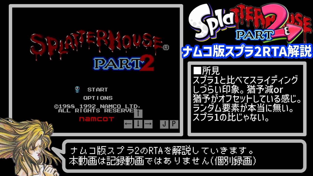 -------------定型文---------------<br>チャンネル登録はしなくても良いので<br>YouTubeの方の再生・高評価よろしくお願いします!(露骨)<br>記録動画はこちら<br><a href="https://youtu.be/akfiiK9XGM0" target="_blank" rel="noopener nofollow">https://youtu.be/akfiiK9XGM0</a><br>-------------定型文おわり---------------<br><br>■本動画の宣伝、ありがとうございます!('24/04/12時点)<br>---------------------<br>(ナ)ナオ様 <a href="https://www.nicovideo.jp/watch/sm13869948" class="watch">sm13869948</a>様 KAI様 yaken様<br>ABA様 みちのく様 K!!様 Lui様 偏執狂的古典派様<br>爆裂ポメチャンヌ様 yakata様 ddl様 yao-lung様<br>こいた博士様 inuneko様 SpeedyBARON様 yoppy31様<br>shwo様<br>---------------------<br><br>スプラッターハウス Part2のSPEEDRUN解説動画を作成しました。<br>スプラッターハウス(Arcade版)よりランダム要素がさらに減り、<br>ほぼ無くなっているので、覚えれば走りやすいと思います。<br><br>※日本語版の"Part2"が英語版のSPLATTERHOUSE・2に相当します。<br>なぜこのナンバリングにしたのか…不明。<br><br>スプラッターハウス系の一覧はこちら↓<br><a href="https://www.nicovideo.jp/series/366575" target="_blank" rel="noopener">series/366575</a>