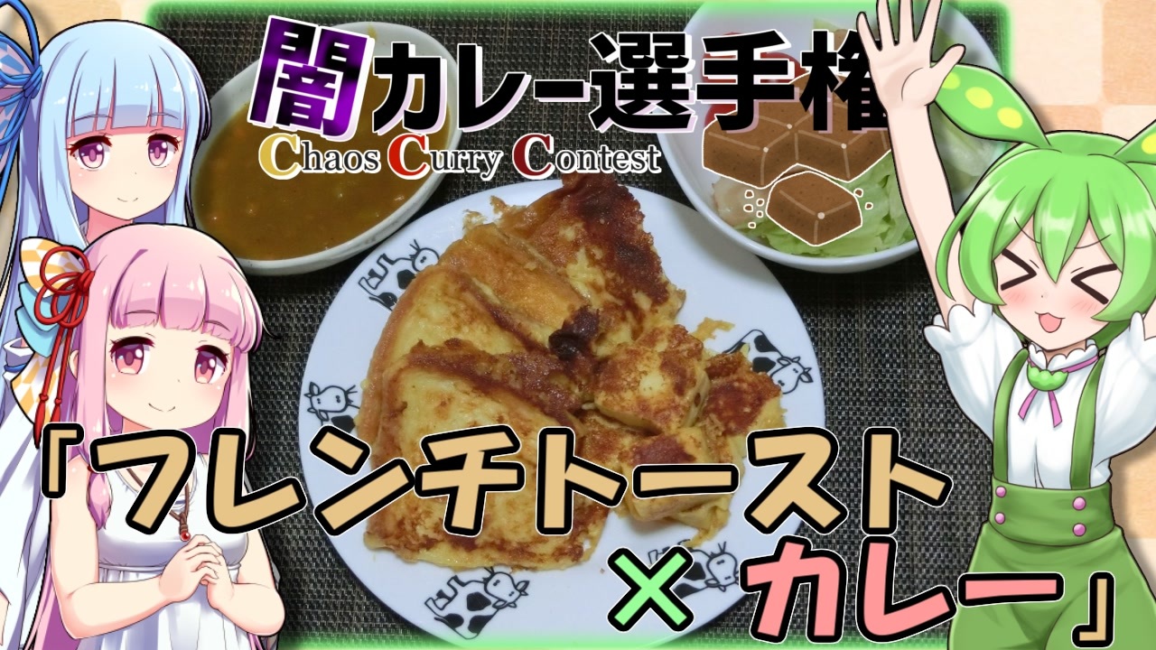 <a href="https://www.nicovideo.jp/watch/sm41951261" class="watch">sm41951261</a> ←前 ココ 次→ <a href="https://www.nicovideo.jp/watch/sm42107778" class="watch">sm42107778</a><br><br>みなさん、闇カレー選手権が終わってしまいますよ!<br><br>普段はゲーム動画投稿者な私ですが、<br>家族での料理を動画化しました。<br><br>アレンジ元の料理:<a href="https://www.nicovideo.jp/watch/sm41955360" class="watch">sm41955360</a><br>マンネリ打破のフレンチトーフト(T.N.Chaos様)<br><br>この動画には、ずんだもん(VOICEVOX)と<br>琴葉姉妹(A.I.VOICE)を使用しております。<br>その他のFALLGUYS動画もぜひ見てくださいね。<br />----------------------------------<br><span style="color: #ff0000; font-size: 18px;"><strong>フォロー・マイリス・いいねをお願いします!</strong></span><br><span style="color: #0000ff; font-size: 18px;">◇◆◇◆投稿者情報◇◆◇◆</span><br>【youtube】:<a href="https://www.youtube.com/@TOZAMA-SUN" target="_blank" rel="noopener nofollow">https://www.youtube.com/@TOZAMA-SUN</a><br>【X(旧Twitter)】:<a href="https://twitter.com/TOZAMA_SUN" target="_blank" rel="noopener nofollow">https://twitter.com/TOZAMA_SUN</a><br><span style="color: #0000ff; font-size: 18px;">◇◆◇◆投稿動画まとめ◇◆◇◆</span><br><span style="color: #ff9900; font-size: 16px;">【代表作(コラボ)】</span><br>・シルシランド&おわむランド:<a href="https://www.nicovideo.jp/series/318551" target="_blank" rel="noopener">series/318551</a><br><span style="color: #980000; font-size: 16px;">【ゲーム実況系(更新中)】</span><br>・オリキャラゲーム単発実況::<a href="https://www.nicovideo.jp/series/481515" target="_blank" rel="noopener">series/481515</a><br><span style="color: #9900ff; font-size: 16px;">【その他(更新中)-料理・ダイエット】</span><br>・お料理:[家族]<a href="https://www.nicovideo.jp/series/286172" target="_blank" rel="noopener">series/286172</a>・[ソロ]<a href="https://www.nicovideo.jp/series/469314" target="_blank" rel="noopener">series/469314</a><br>・減量計画:[R5]<a href="https://www.nicovideo.jp/series/417038" target="_blank" rel="noopener">series/417038</a>・[R6]<a href="https://www.nicovideo.jp/series/478128" target="_blank" rel="noopener">series/478128</a><br><span style="color: #0000ff; font-size: 18px;"><strong>※完結済み動画はシリーズよりご確認願います!</strong></span><br><br><a target="_blank" href="https://qa.nicovideo.jp/faq/show/19424?site_domain=default" style="font-size: 13px;color: #657586; text-decoration: underline; line-height: 1.4">この動画は投稿者によって修正されました</a>